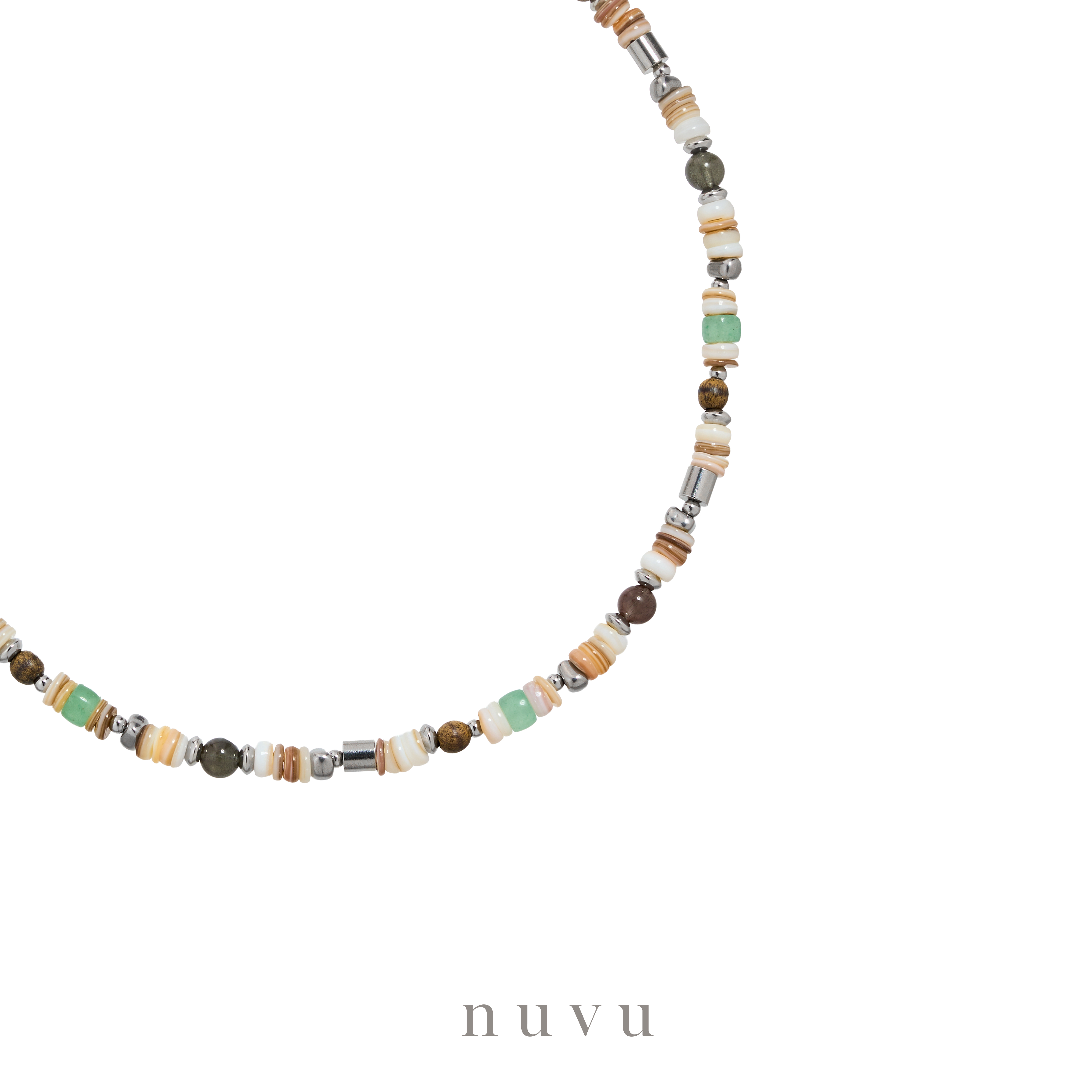Daily Buff Necklace & Howl’s Journey Bracelet A duo designed to help you push past limits and regain momentum. This set supports courage, motivation, and self-confidence — perfect for anyone ready to break free from stagnation and step into a phase of growth. Wear it as a daily reminder to move forward with clarity and strength. Daily Buff Necklace Crystal : Aventurine, Cat Eye Scapolite, Agarwood, Shell Material : Stainless Steel Bead size : 6mm Necklace : 40cm+5cm Howl's Journey Bracelet Crystal : Howlite Material : Stainless Steel Bead size : 5-6mm Bracelet : 16cm Delivery Time : All our designs are meticulously handcrafted, which requires time for production. Kindly allow 7-14 days for delivery to your doorstep. Any special enquiry please contact our customer service.