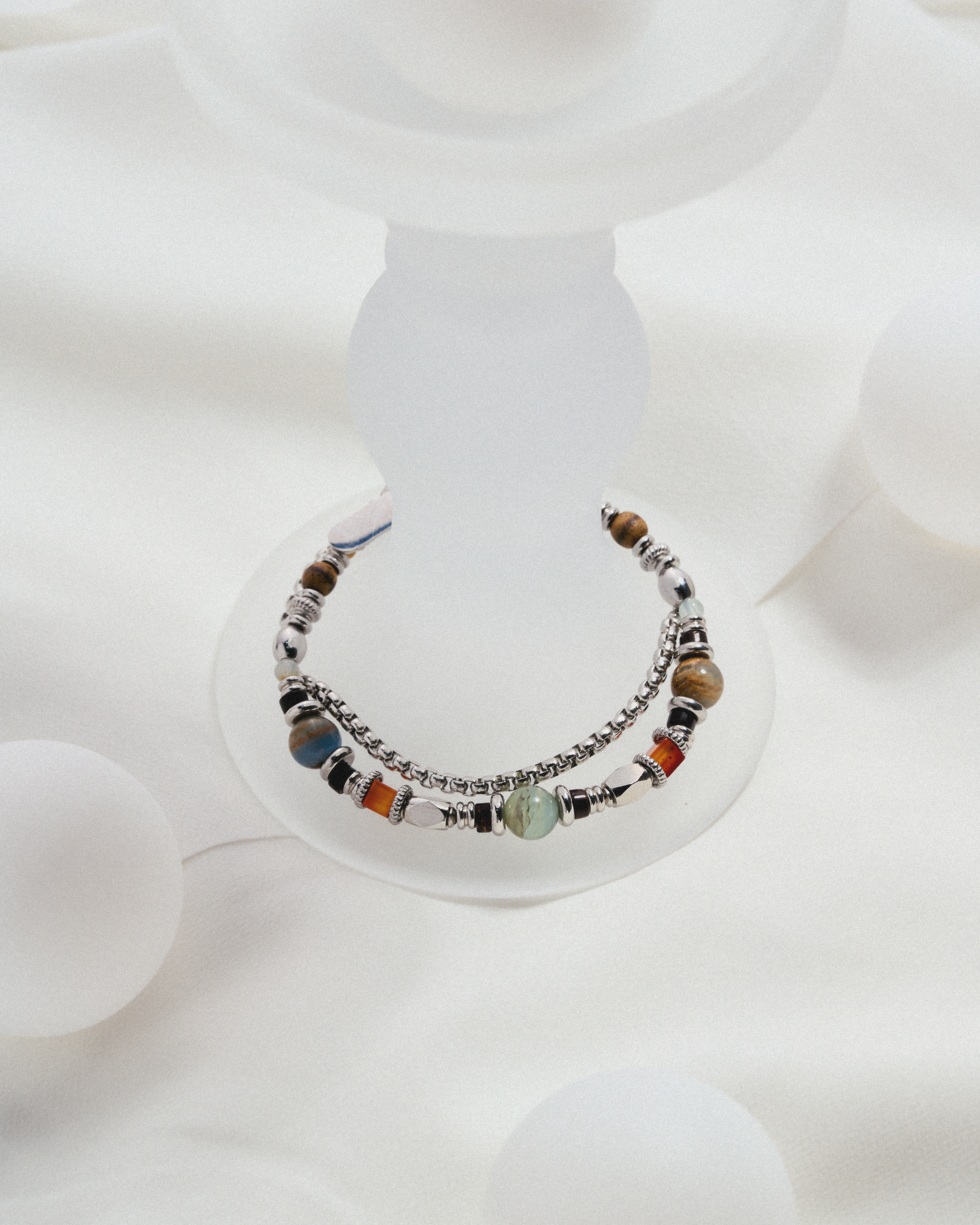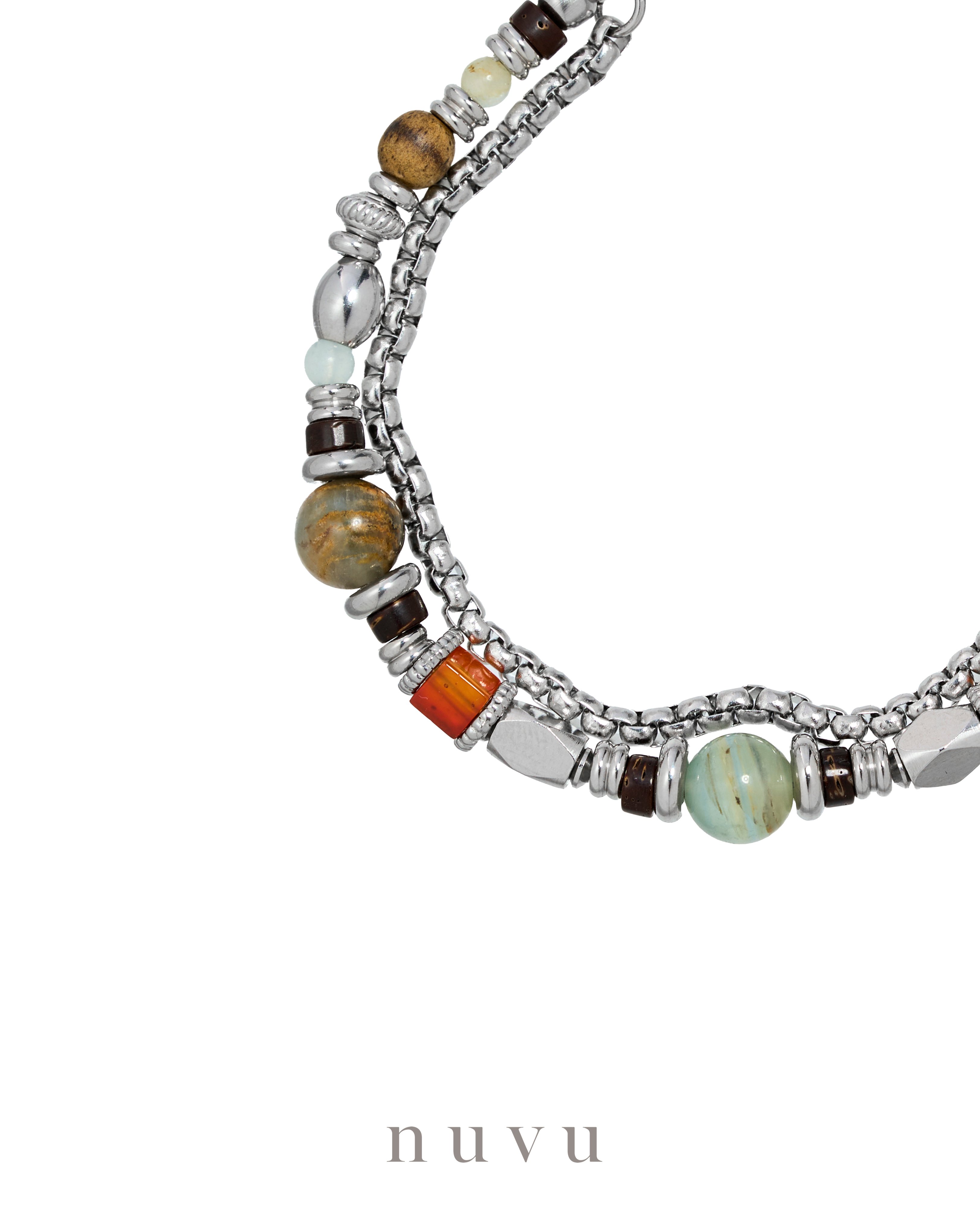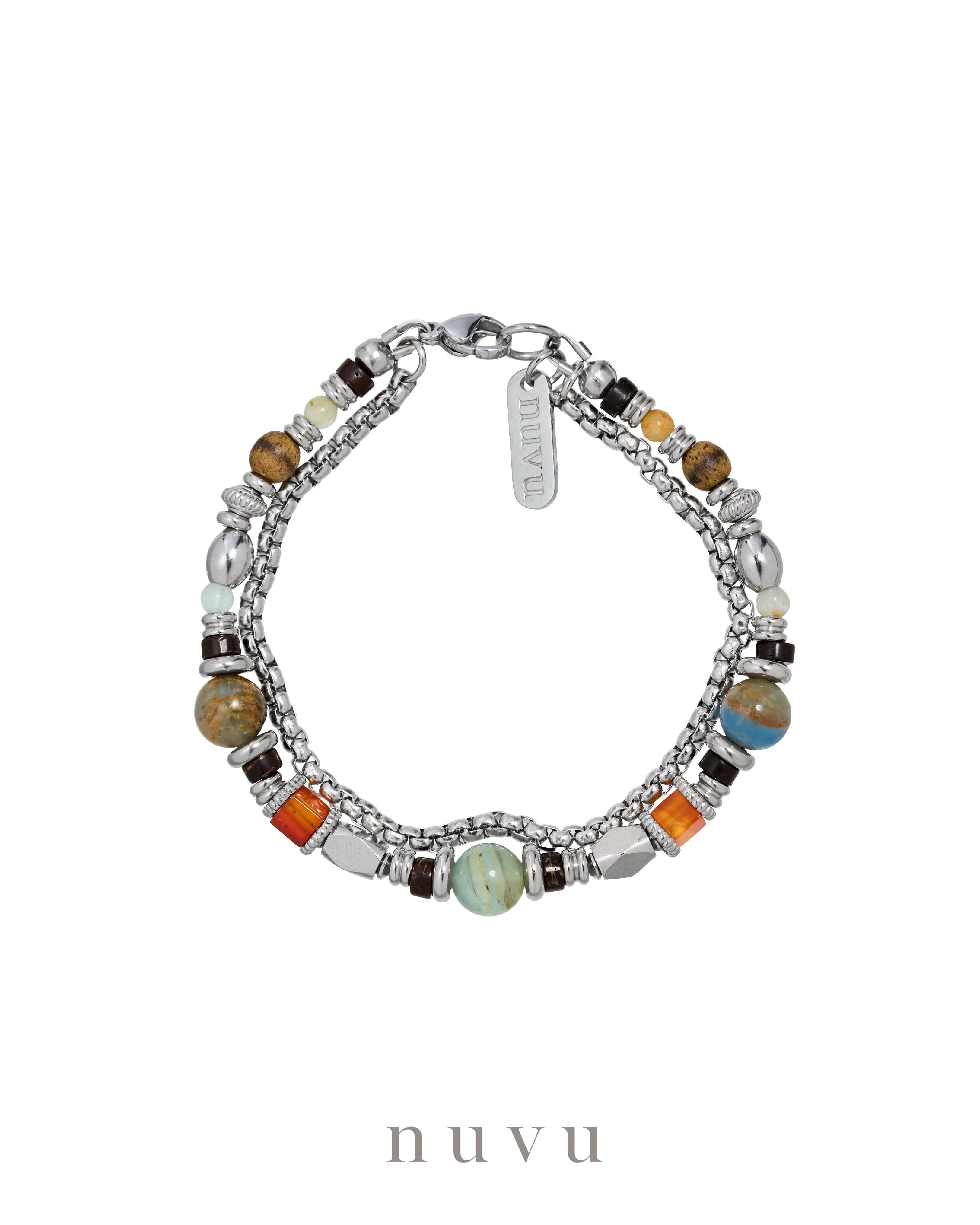 NUVU’s new Blue Calcite Series blends the soothing blue tones of Blue Calcite with the bold warmth of Red Agate, the signature color of the Nine Purple Fire Cycle. Finished with coconut shell accents, the design feels both carefree and grounded — relaxed, yet full of life.