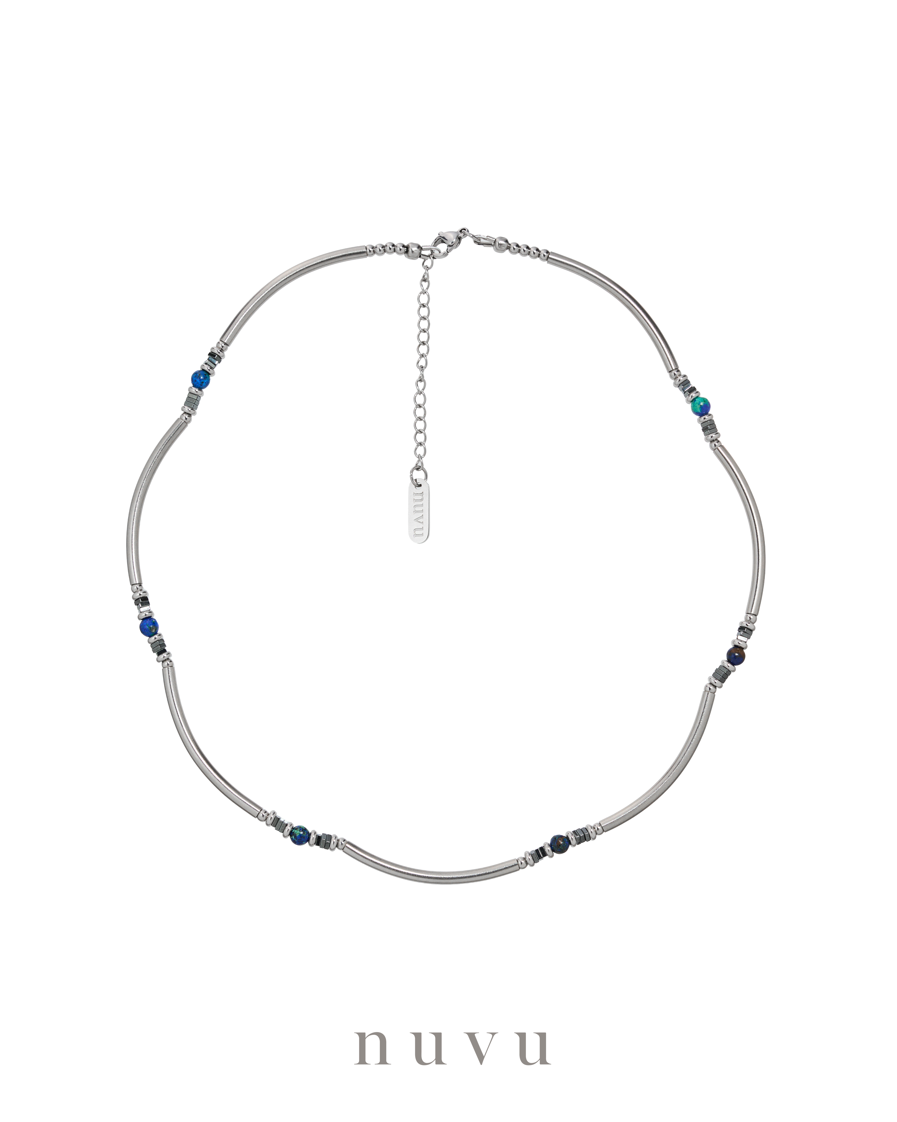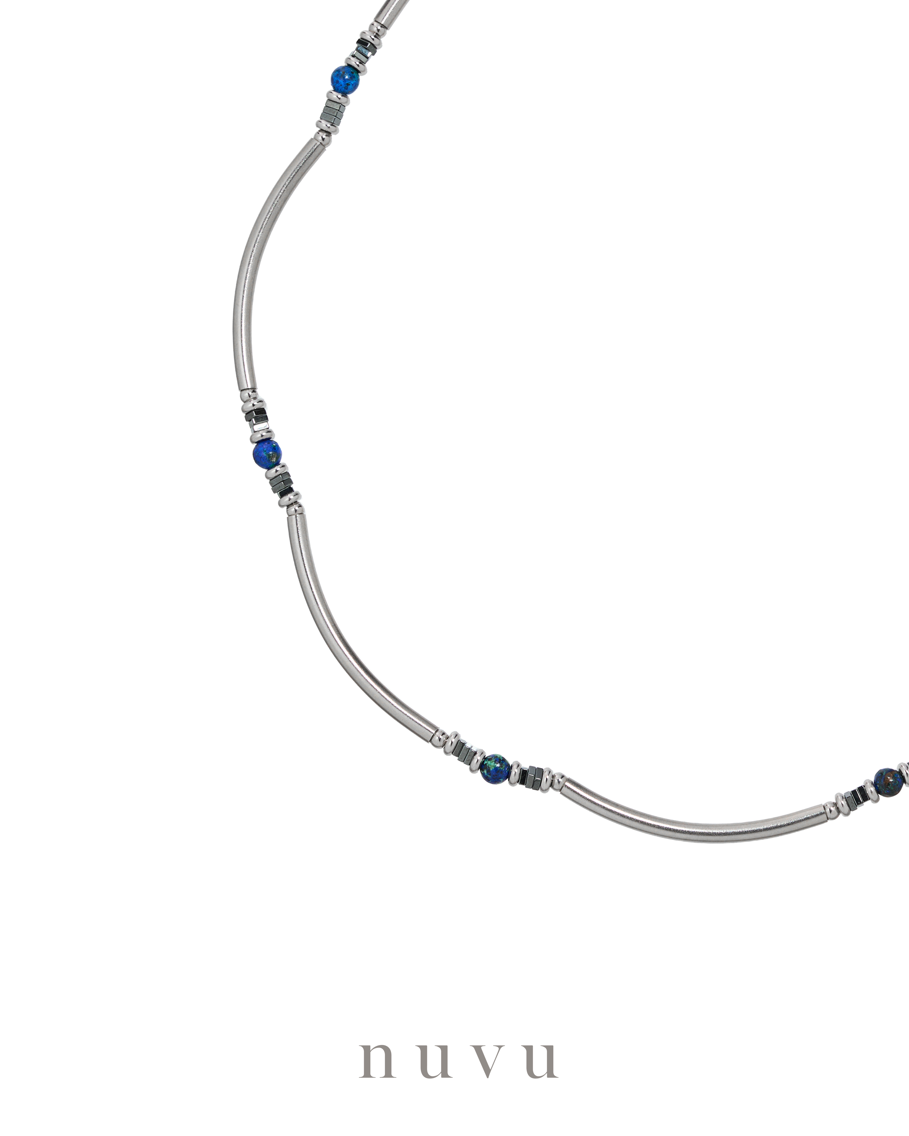 Introducing Blueprint 2.0 — NUVU’s brand new azurite series, etched with the natural textures of the Earth. In this fast-moving world, the ability to see clearly and act decisively has become one of our most essential life skills. And azurite—a fusion of lapis lazuli and malachite—is your crystal compass: a powerful “third eye” stone that sharpens perception, awakens intuition, and guides you through the fog. This isn’t just another gemstone. It was once called the “Stone That Speaks” by famed psychic Edgar Cayce, who credited it with helping him foresee pivotal moments in history, including WWII. Even today, it’s revered by visionaries and spiritual practitioners for its ability to amplify inner wisdom and clear mental blockages. Why do you need it? Because in an overwhelming world of choices, distractions, and noise, we’re constantly faced with decisions: Should I change jobs? Take that leap? Am I on the right path? Most of the time, it’s not a lack of ability—it’s the lack of clarity that holds us back. That’s where Blueprint 2.0 steps in: • It enhances your decision-making and helps you trust your inner compass • Opens your “third eye” to deeper insights and energetic awareness • Grounds your emotions, clears stress, and supports mental stability • Expands your vision and helps you navigate life with intention This is more than a stone. It’s a reminder that the answers you seek are already within you—waiting to be seen. Let Blueprint 2.0 be your intuitive guide. Let it clear the fog, calm your mind, and bring you back to your own inner map. Because the most important direction in life… Is the one you see for yourself. Crystal : Azurite, Hematite Material : Stainless Steel Bead size : 4-6mm Necklace : 40cm Delivery Time : All our designs are meticulously handcrafted, which requires time for production. Kindly allow 7-14 days for delivery to your doorstep. Any special enquiry please contact our customer service.