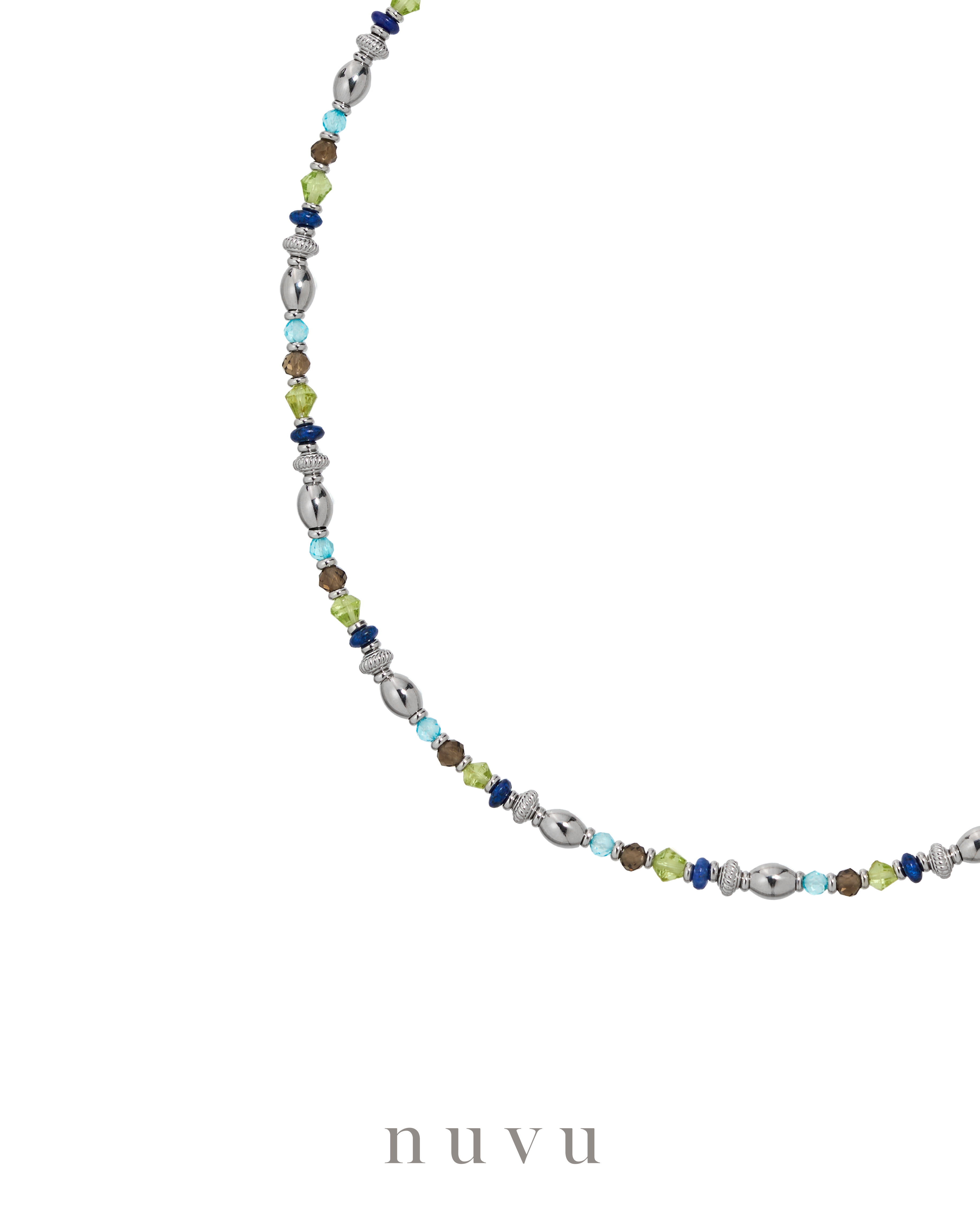 NUVU · Core Skillset Series In a world that moves faster than ever, Luck × Communication × Creativity × Healing are no longer “nice to have” — they’re the core skillset every modern soul needs. The Core Skillset Series is designed as your energy-based toolkit, supporting the essential abilities required in work, life, and personal growth. Not abstract, not distant — but energies you actually use every day. 💙 Lapis Lazuli — Independent Thinking & Insight In a fast-paced environment, clarity is everything. Lapis Lazuli enhances logic, strengthens discernment, and helps you think independently without being overwhelmed by chaos or pressure. It sharpens your focus, improves problem-solving, and helps you “see through” situations quickly. 💛 Topaz — Communication & Breakthrough This era doesn’t reward silence. Topaz boosts communication skills, helping you express ideas confidently and break through hesitation or self-doubt. It empowers you to speak up, own your voice, and let your ideas shine. 💚 Peridot — Confidence & Luck Activation Peridot symbolizes good fortune and positive flow. It boosts confidence, enhances motivation, and attracts supportive people and opportunities. When your energy aligns, everything starts moving smoothly — from work progress to financial luck. 🤎 Smoky Quartz — Anti-Overthinking & Emotional Stability The hardest part of modern life isn’t effort — it’s not exhausting yourself. Smoky Quartz clears emotional noise, reduces anxiety, and stabilizes your energy field so you stay grounded and collected. Less internal chaos, more clarity. A calm mind makes every decision sharper. ✨ Core Skillset Series Not flashy power — but the essential abilities your soul needs to thrive. When you can think clearly, communicate confidently, attract opportunities, and stay emotionally steady… Crystal : Peridot, Topaz, Smoky Quartz, Lapis Lazuli Material : Stainless Steel Bead size : 4mm Necklace : 40+5cm Bracelet : 16cm Delivery Time : All our designs are meticulously handcrafted, which requires time for production. Kindly allow 7-14 days for delivery to your doorstep. Any special enquiry please contact our customer service.