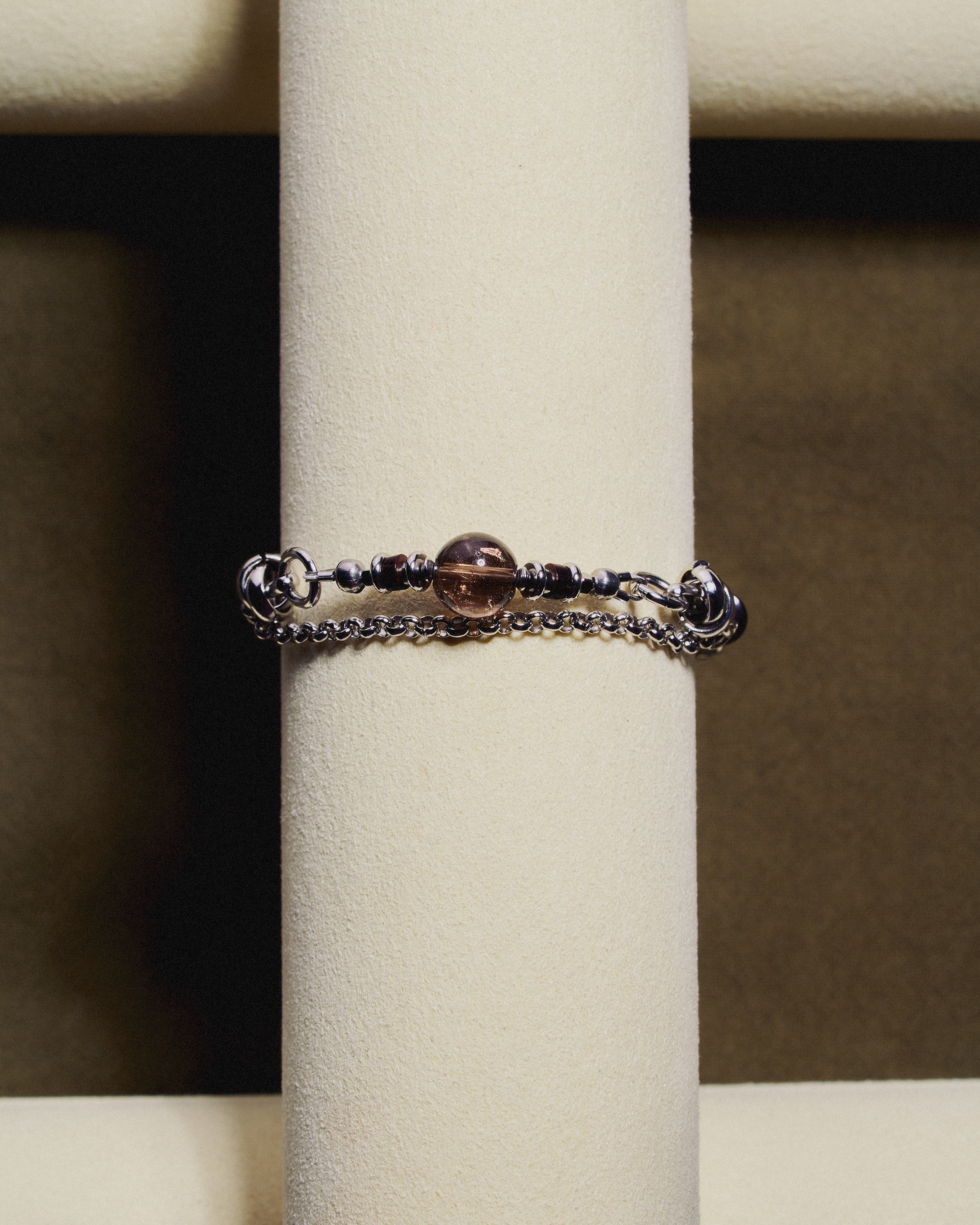 Its exterior is calm, cool, and grounded — a deep smoky tone that feels steady and composed.