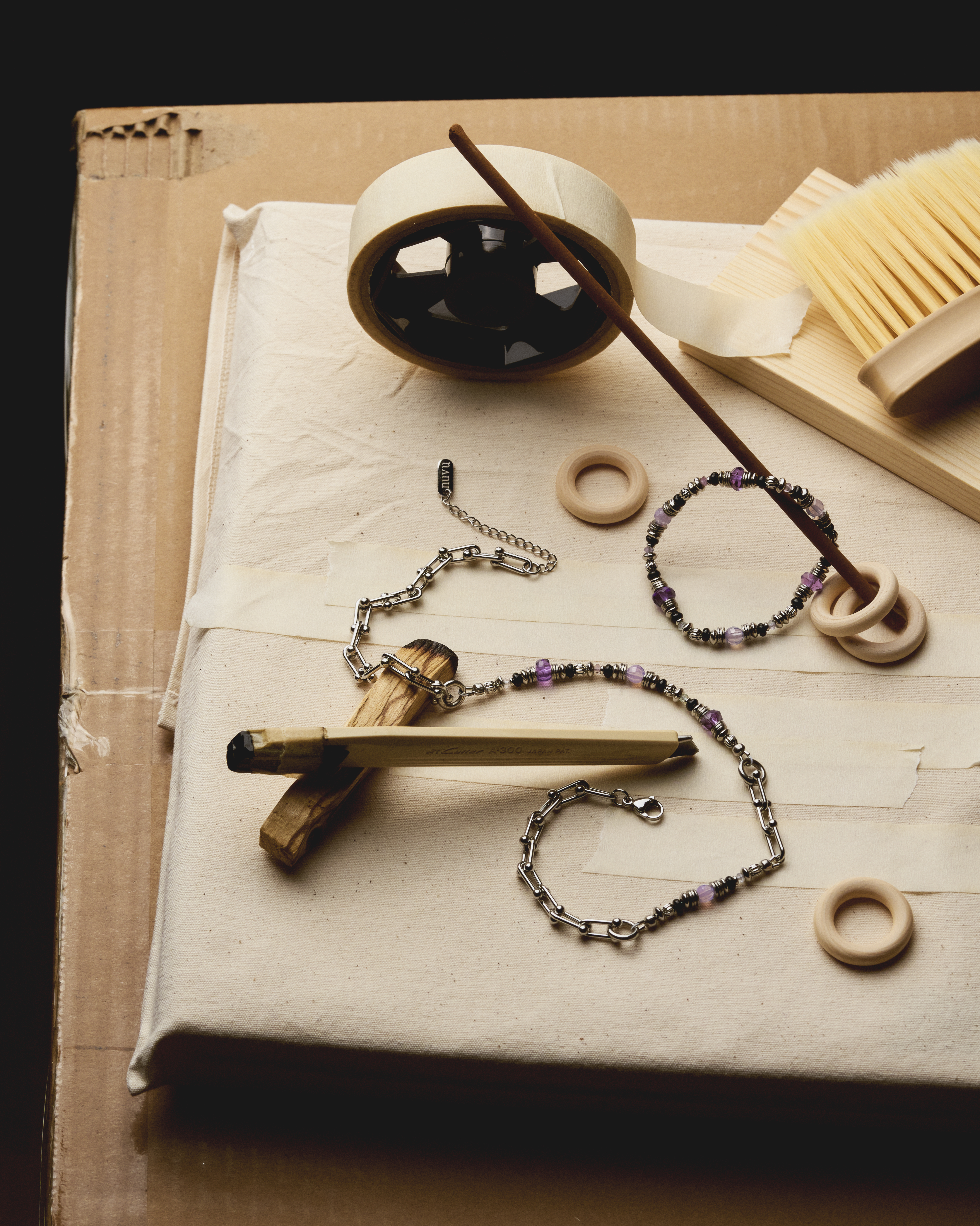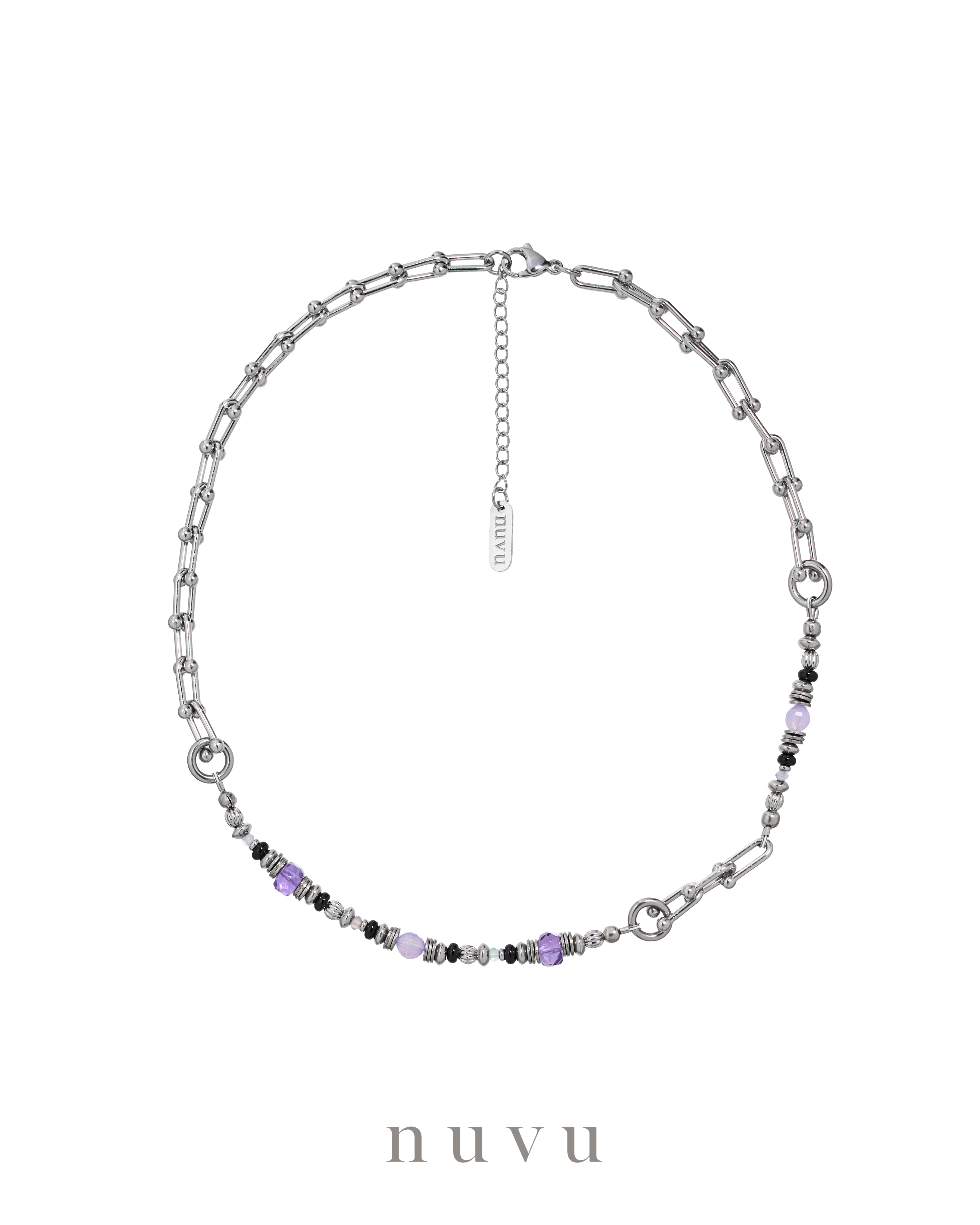 NUVU · Mind Orbit Series Experience the perfect harmony of wisdom and calm — a state of focus without chaos. In a world that moves faster than ever, where endless information floods our minds, our attention is scattered, and emotions are easily pulled off balance. Focus and insight have become rare forms of power. Those who stay calm, think clearly, and act with awareness — they lead, they see, they thrive. The Mind Orbit Series, crafted with Scorolite, Amethyst, Black Agate, and Fluorite, guides you on a journey from mental clarity to spiritual stillness. It helps you find order within chaos and awareness amid pressure, allowing your thoughts to realign and your energy to stabilize. Scorolite and Amethyst resonate with the Third Eye Chakra, enhancing focus, intuition, and perception. Black Agate grounds your energy, strengthening resilience and inner stability. Fluorite clears mental clutter, purifying emotions and sharpening logic. Together, this energy combination acts like a mental “reset” — helping you stay composed, see clearly, and move forward with quiet confidence. In an age where attention is currency and awareness is strength, Mind Orbit reminds you that true power doesn’t come from speed — it comes from stability, clarity, and rhythm. When your mind is centered, you no longer chase balance — you become it. ✨ Mind Orbit Series The world may grow louder, but those who stay still will always go further. Return your mind to its center — see clearer, act wiser, and move with purpose. Crystal : Amethyst, Scorolite, Black Agate, Fluorite Material : Stainless Steel Bead size : 2-6mm Necklace : 40+5cm Delivery Time : All our designs are meticulously handcrafted, which requires time for production. Kindly allow 7-14 days for delivery to your doorstep. Any special enquiry please contact our customer service.