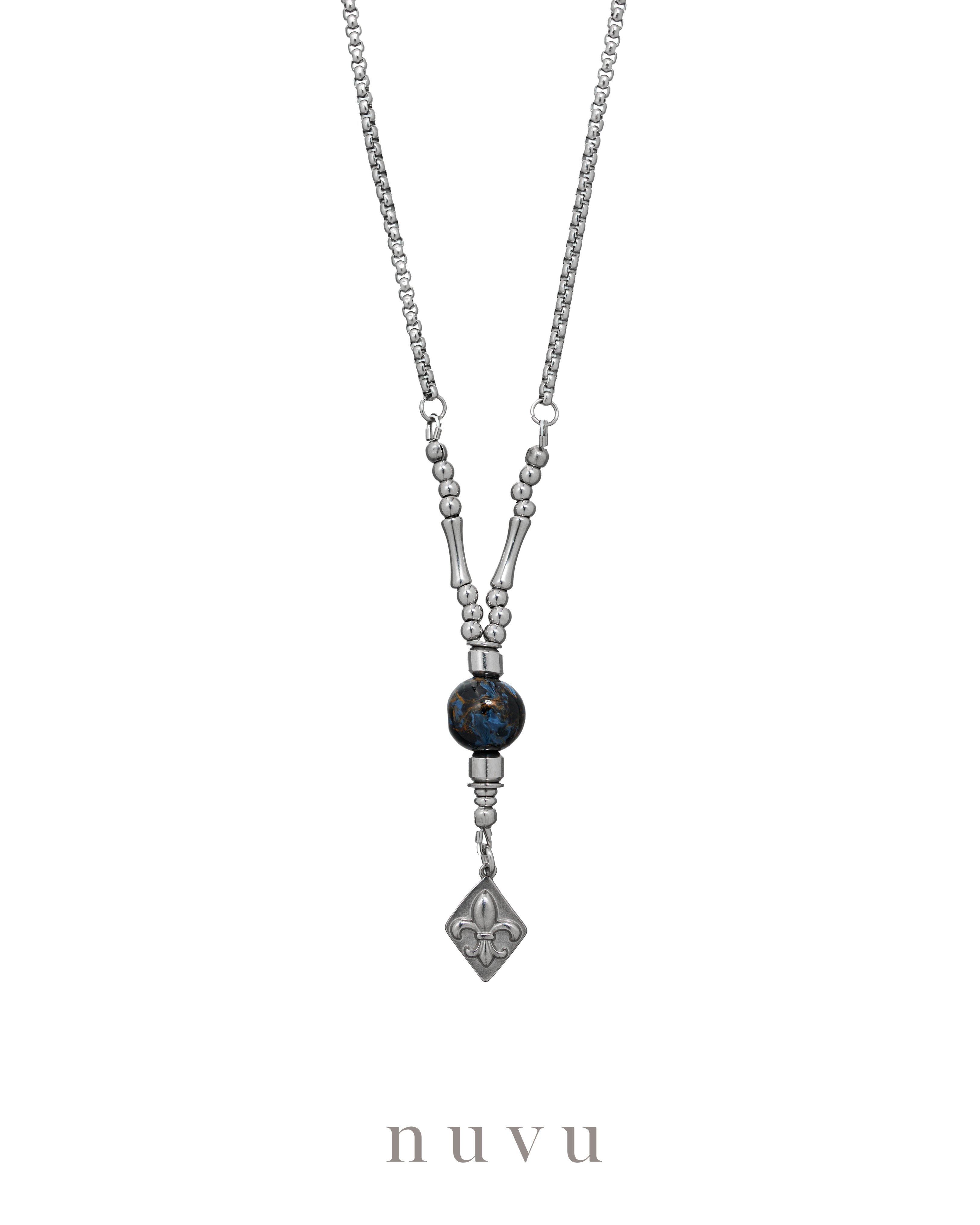NUVU · Pathfinder Series Every attempt begins with the unknown — but don’t let fear of the road ahead make you forget how brave you’ve already been to come this far. So this time — why not take one more bold step forward? Introducing Pathfinder, NUVU’s new collection inspired by courage, clarity, and cosmic guidance. Crafted with the rare Pietersite, known as the “Stone of Storms,” each piece carries swirling patterns like galaxies in motion — a reminder that infinite possibilities await those who dare to explore. 💎 Pietersite — The Power of Courage and Awakening Pietersite holds the frequency of transformation and self-mastery. It strengthens your confidence and determination, helping you stay grounded and clear even in moments of chaos and change. It reveals the truth behind fear — and teaches you how to rise above it. No matter how many times you fall, it gives you the strength to stand tall again. The spirit of Pathfinder lies in breakthrough. Every challenge is an opportunity to evolve, every leap of faith brings you closer to your true potential. It encourages you to trust your instincts, embrace uncertainty, and step into the unknown with conviction and purpose. ✨ Pathfinder Series Move forward fearlessly. The universe is already lighting your way — and once you take that first step, you’ll find the sun, the stars, and every possibility waiting for you. Crystal : Petersite Material : Stainless Steel Bead size : 6mm Necklace : 70cm Delivery Time : All our designs are meticulously handcrafted, which requires time for production. Kindly allow 7-14 days for delivery to your doorstep. Any special enquiry please contact our customer service.