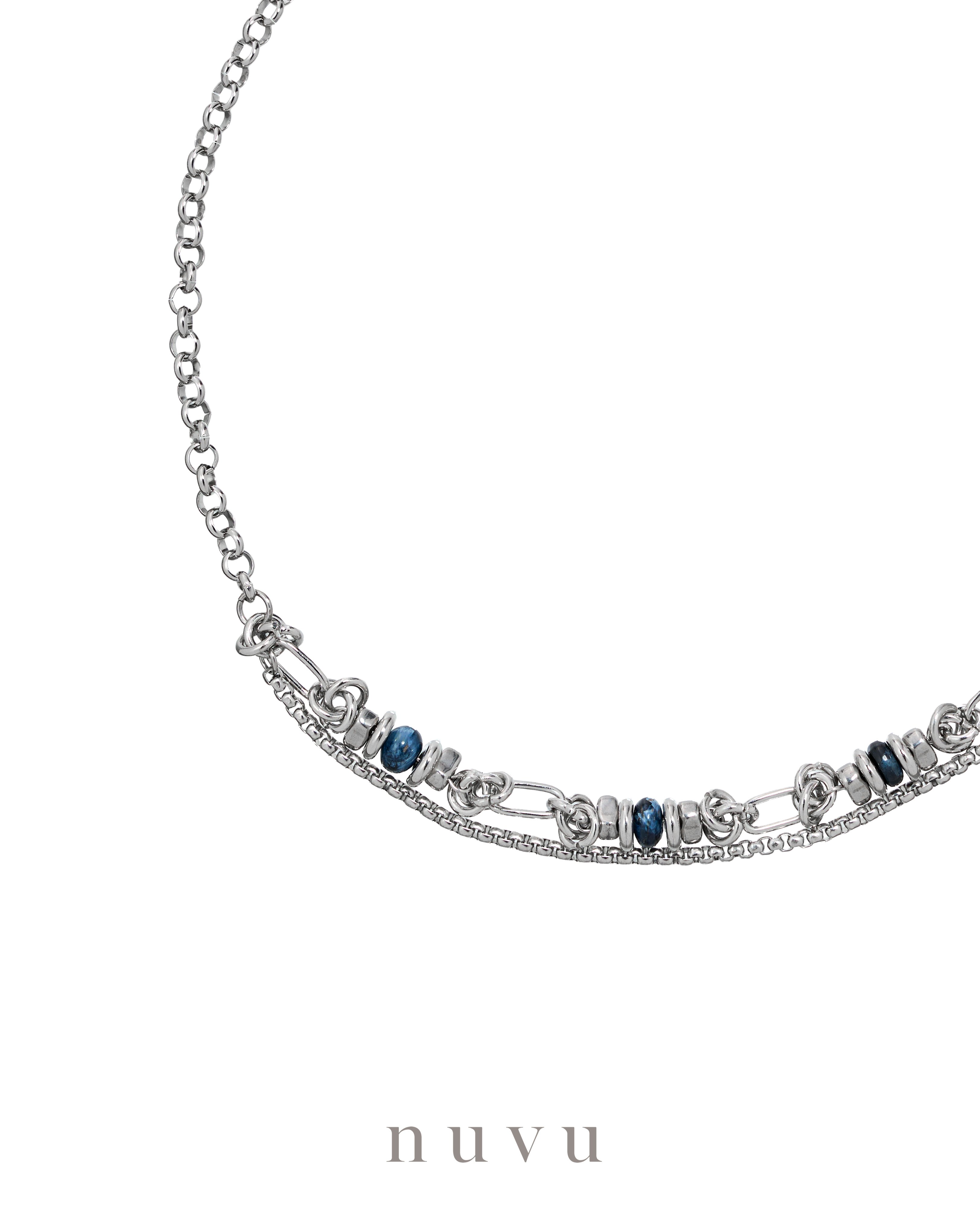 NUVU · Pathfinder Series Every attempt begins with the unknown — but don’t let fear of the road ahead make you forget how brave you’ve already been to come this far. So this time — why not take one more bold step forward? Introducing Pathfinder, NUVU’s new collection inspired by courage, clarity, and cosmic guidance. Crafted with the rare Pietersite, known as the “Stone of Storms,” each piece carries swirling patterns like galaxies in motion — a reminder that infinite possibilities await those who dare to explore. 💎 Pietersite — The Power of Courage and Awakening Pietersite holds the frequency of transformation and self-mastery. It strengthens your confidence and determination, helping you stay grounded and clear even in moments of chaos and change. It reveals the truth behind fear — and teaches you how to rise above it. No matter how many times you fall, it gives you the strength to stand tall again. The spirit of Pathfinder lies in breakthrough. Every challenge is an opportunity to evolve, every leap of faith brings you closer to your true potential. It encourages you to trust your instincts, embrace uncertainty, and step into the unknown with conviction and purpose. ✨ Pathfinder Series Move forward fearlessly. The universe is already lighting your way — and once you take that first step, you’ll find the sun, the stars, and every possibility waiting for you. Crystal : Petersite Material : Stainless Steel Bead size : 6mm Necklace : 42+5cm Delivery Time : All our designs are meticulously handcrafted, which requires time for production. Kindly allow 7-14 days for delivery to your doorstep. Any special enquiry please contact our customer service.