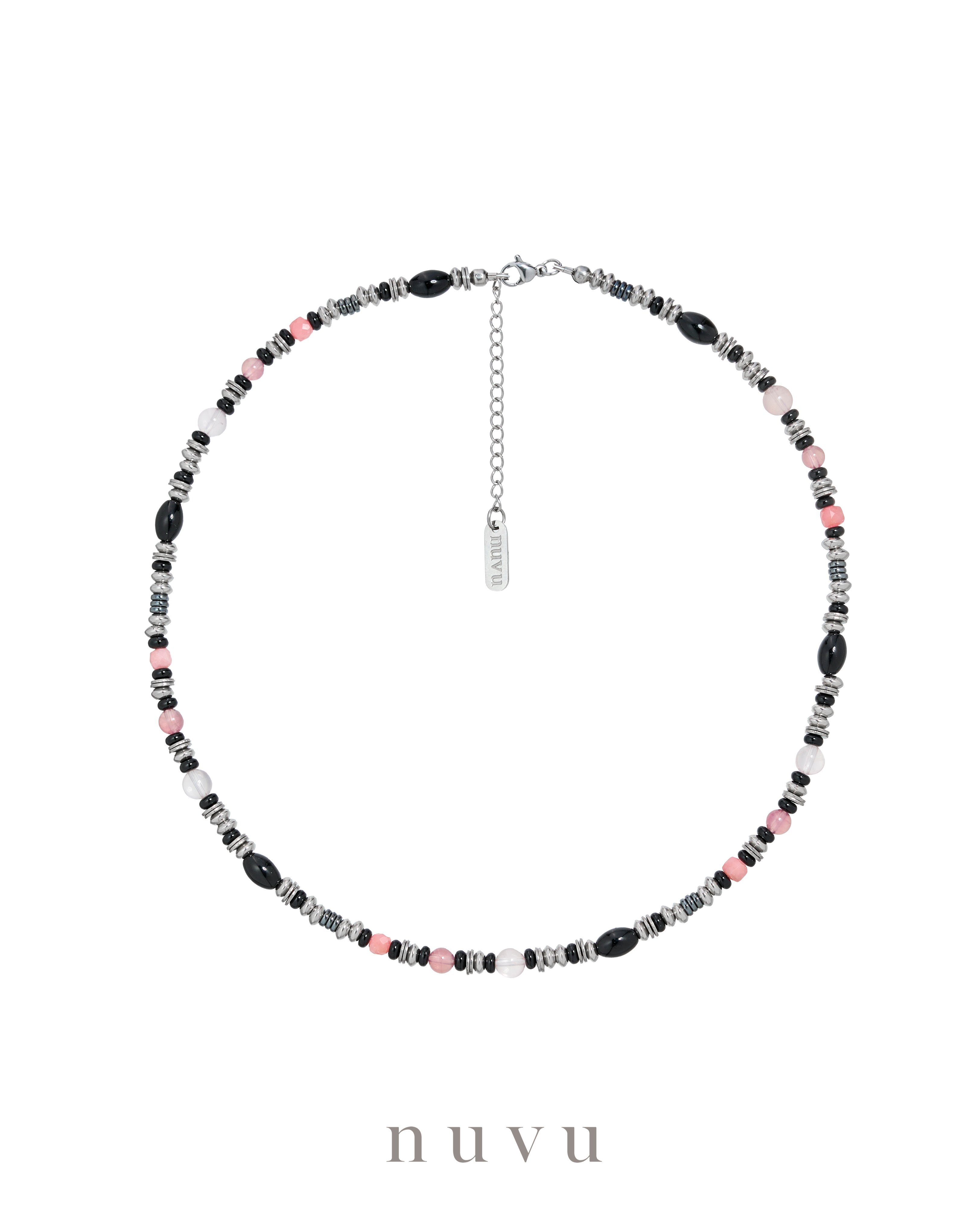 NUVU · Pink Trio Series Good connections aren’t luck — they’re energy. The aura you carry decides who feels drawn to you. Who says pink can only be soft and never cool? NUVU’s newest Pink Trio series rewrites that rule — a perfect fusion of soft pink tones with bold black accents, crafted for those who want charm and presence. This collection features Pink Opal and Rose Quartz paired with Black Agate, forming a balanced blend of gentleness and grounded strength. 💗 Pink Minerals — Heart-Opening, Warm & Magnetic Pink stones gently soothe your emotions, relieving anxiety and internal tension, helping you show up as a more confident, open, and easy-to-like version of yourself. They naturally enhance charm, emotional warmth, and approachability — making others want to come closer, talk to you, and feel comfortable in your presence. 🖤 Black Minerals — Stability, Confidence & Boundaries Black Agate anchor your energy, turning softness into strength, not vulnerability. They build inner confidence, sharpen awareness, and help you maintain healthy boundaries in social situations without losing your kindness. ✨ What Pink Trio Really Brings You: • Quietly shifts your aura to be more likable — without people-pleasing • Opens the heart chakra so your natural warmth radiates outward • Attracts positive relationships, supportive people, and even romantic energy • Enhances trust and connection — perfect for business, creators & service providers • Helps you remain calm, grounded, and genuine in any social environment You don’t need to try hard. You don’t need to act differently. True popularity comes when you become more of yourself — and the world responds with softness. ✨ Pink Trio Series Soft, bold, magnetic — all at once, all in you. Crystal : Pink Opal, Rose Quartz, Black Agate, Hematite Material : Stainless Steel Bead size : 4-6mm Necklace : 40+5cm Delivery Time : All our designs are meticulously handcrafted, which requires time for production. Kindly allow 7-14 days for delivery to your doorstep. Any special enquiry please contact our customer service.