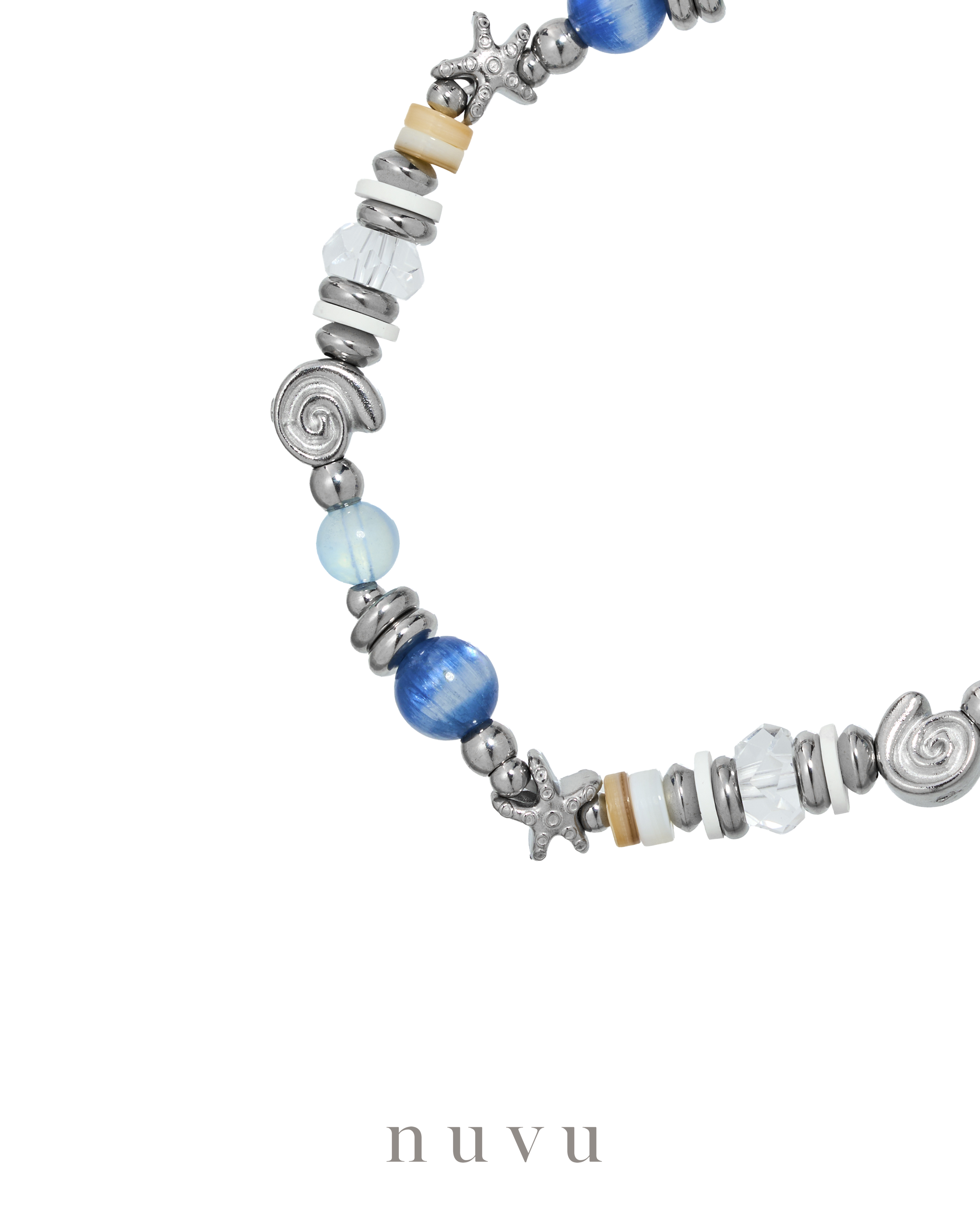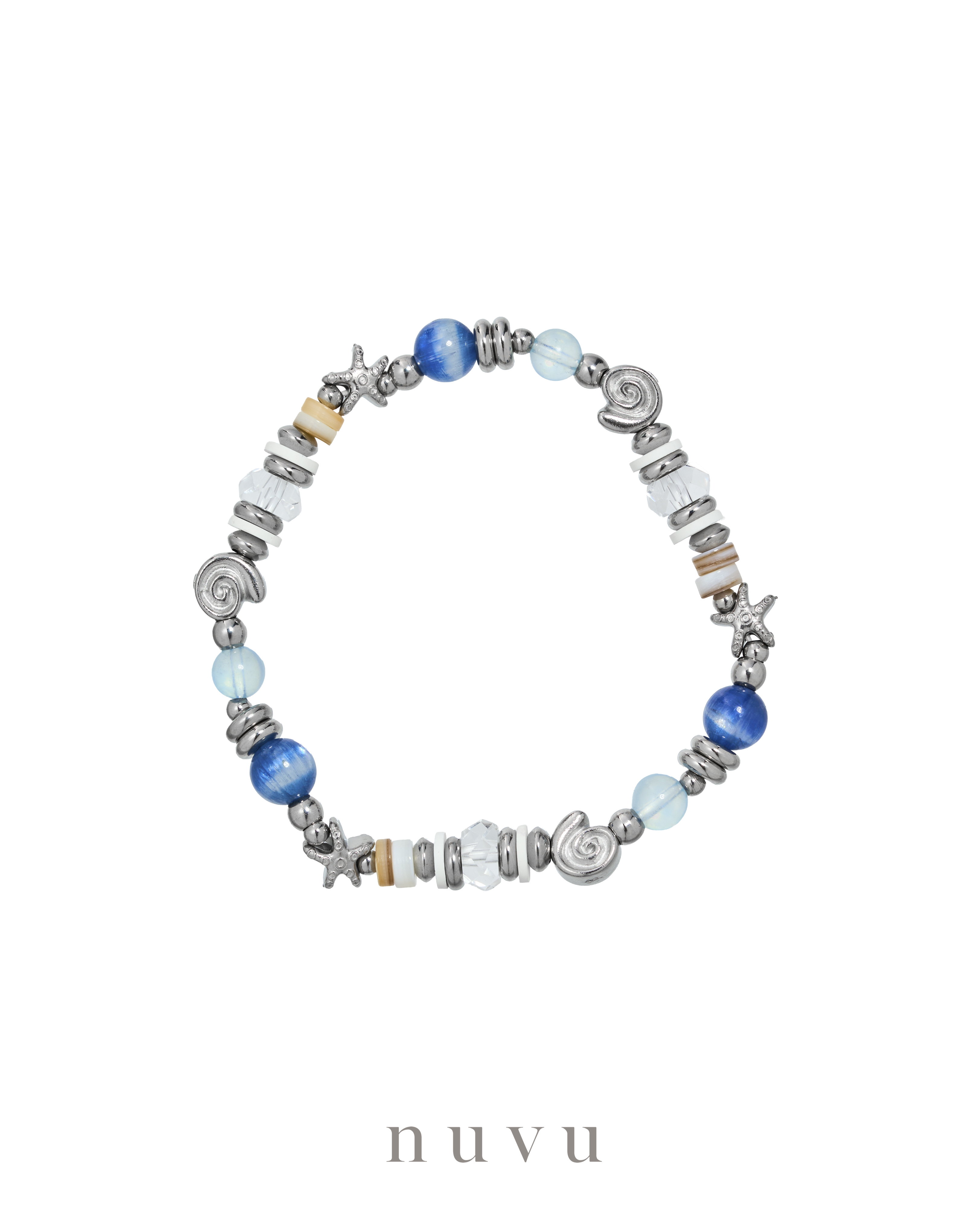 NUVU · Take a Break Series because even the ocean rests between waves. When was the last time you truly took a break? Not scrolling, not rushing, not surviving — but breathing, feeling the sun, hearing your own heartbeat again. The Take a Break Series was created for that exact moment. Inspired by the ocean, the horizon, the warmth of daylight — a reminder that you deserve to pause, reset, and return to yourself. We paired translucent Kyanite, ocean-washed Aquamarine, clean and grounding Clear Quartz, and soft Shell accents to recreate the feeling of standing barefoot on sand, with wind in your hair and nothing weighing your heart down. It’s that moment when your worries loosen, your emotions finally exhale, and the world feels a little bigger, a little kinder. 💙 Kyanite brings clarity — like the ocean pulling clouds away — helping your mind tidy itself, helping your thoughts find direction again. 🌊 Aquamarine is the calm tide — softening anxiety, easing tension, helping your voice flow naturally so you can express yourself without fear or pressure. ✨ Clear Quartz works like sunlight on water — cleansing, clearing, and returning your energy to its purest state. Together, they hold the energy of: rest, release, reset. Just like waves — coming in, going out — everything finds its rhythm again. ✨ Take a Break Series For the moments you feel overwhelmed. For the days you forget to breathe. For the heart that just needs a little space to come back home. This isn’t just a jewelry series. It’s a permission slip — to pause, to feel, to let the ocean inside you settle again. Crystal : Kyanite, Clear Quartz, Aquamarine, Shell Material : Stainless Steel Bead size : 7mm Bracelet : 16cm Delivery Time : All our designs are meticulously handcrafted, which requires time for production. Kindly allow 7-14 days for delivery to your doorstep. Any special enquiry please contact our customer service.