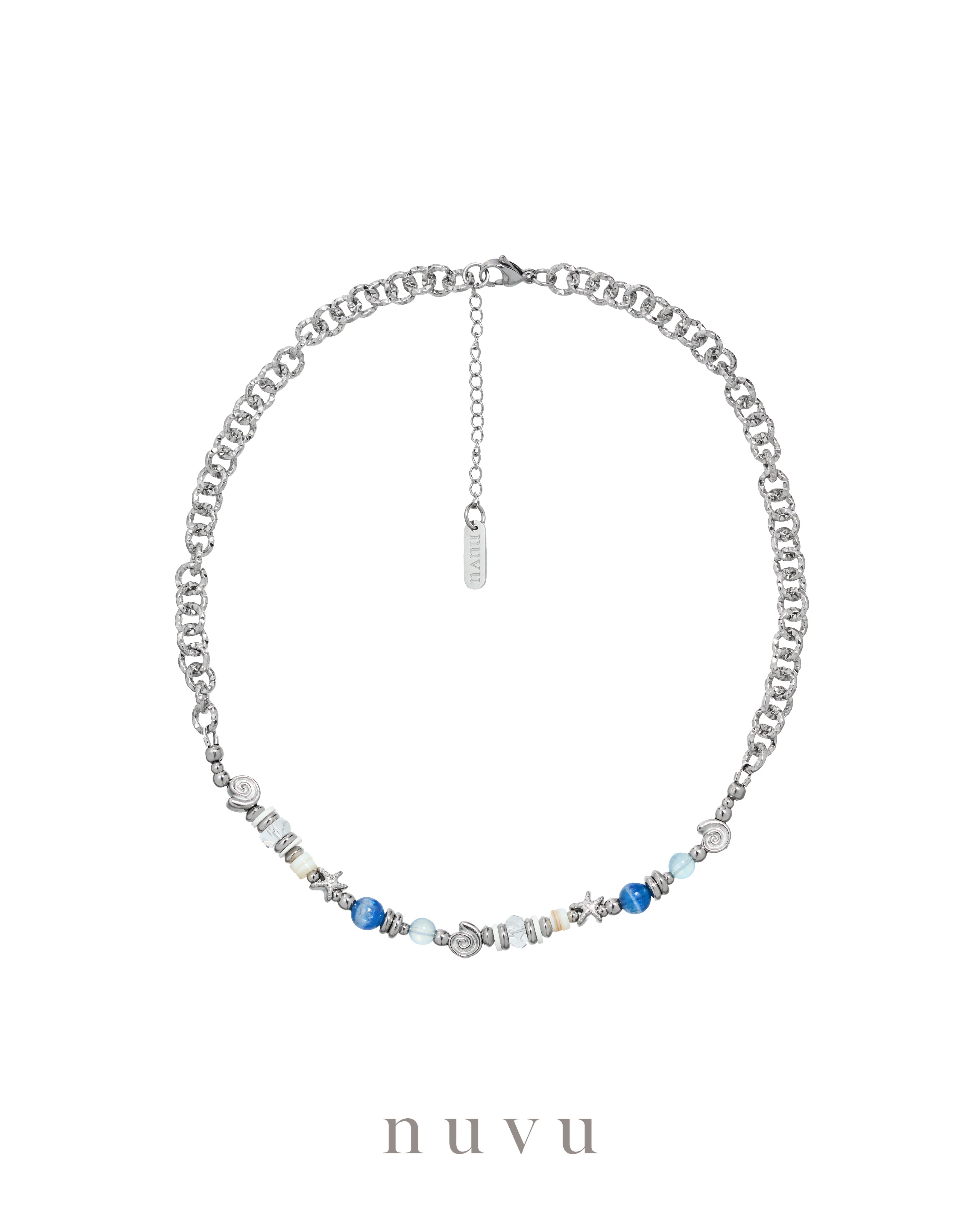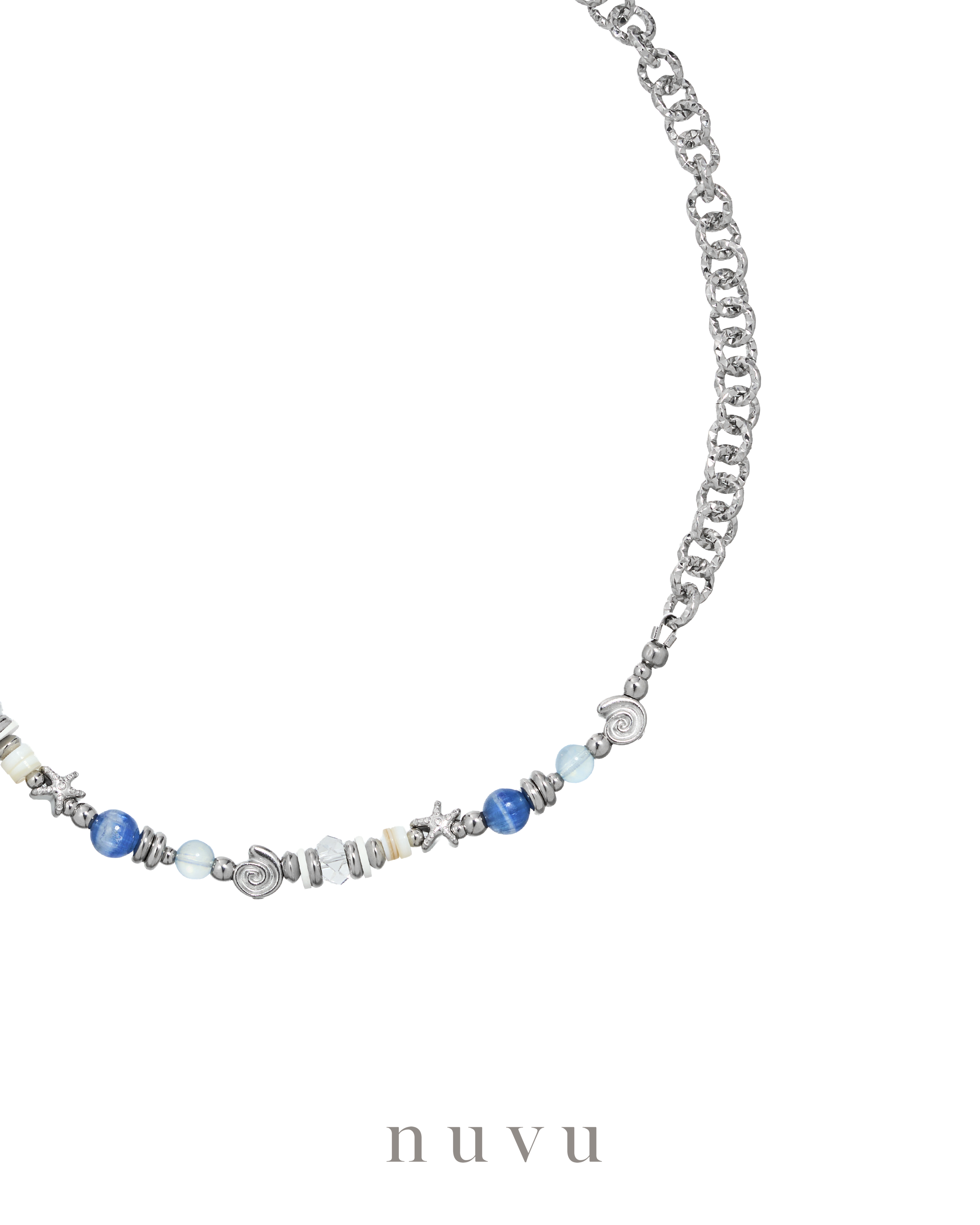 NUVU · Take a Break Series because even the ocean rests between waves. When was the last time you truly took a break? Not scrolling, not rushing, not surviving — but breathing, feeling the sun, hearing your own heartbeat again. The Take a Break Series was created for that exact moment. Inspired by the ocean, the horizon, the warmth of daylight — a reminder that you deserve to pause, reset, and return to yourself. We paired translucent Kyanite, ocean-washed Aquamarine, clean and grounding Clear Quartz, and soft Shell accents to recreate the feeling of standing barefoot on sand, with wind in your hair and nothing weighing your heart down. It’s that moment when your worries loosen, your emotions finally exhale, and the world feels a little bigger, a little kinder. 💙 Kyanite brings clarity — like the ocean pulling clouds away — helping your mind tidy itself, helping your thoughts find direction again. 🌊 Aquamarine is the calm tide — softening anxiety, easing tension, helping your voice flow naturally so you can express yourself without fear or pressure. ✨ Clear Quartz works like sunlight on water — cleansing, clearing, and returning your energy to its purest state. Together, they hold the energy of: rest, release, reset. Just like waves — coming in, going out — everything finds its rhythm again. ✨ Take a Break Series For the moments you feel overwhelmed. For the days you forget to breathe. For the heart that just needs a little space to come back home. This isn’t just a jewelry series. It’s a permission slip — to pause, to feel, to let the ocean inside you settle again. Crystal : Kyanite, Clear Quartz, Aquamarine, Shell Material : Stainless Steel Bead size : 7mm Necklace : 40cm +5cm Delivery Time : All our designs are meticulously handcrafted, which requires time for production. Kindly allow 7-14 days for delivery to your doorstep. Any special enquiry please contact our customer service.