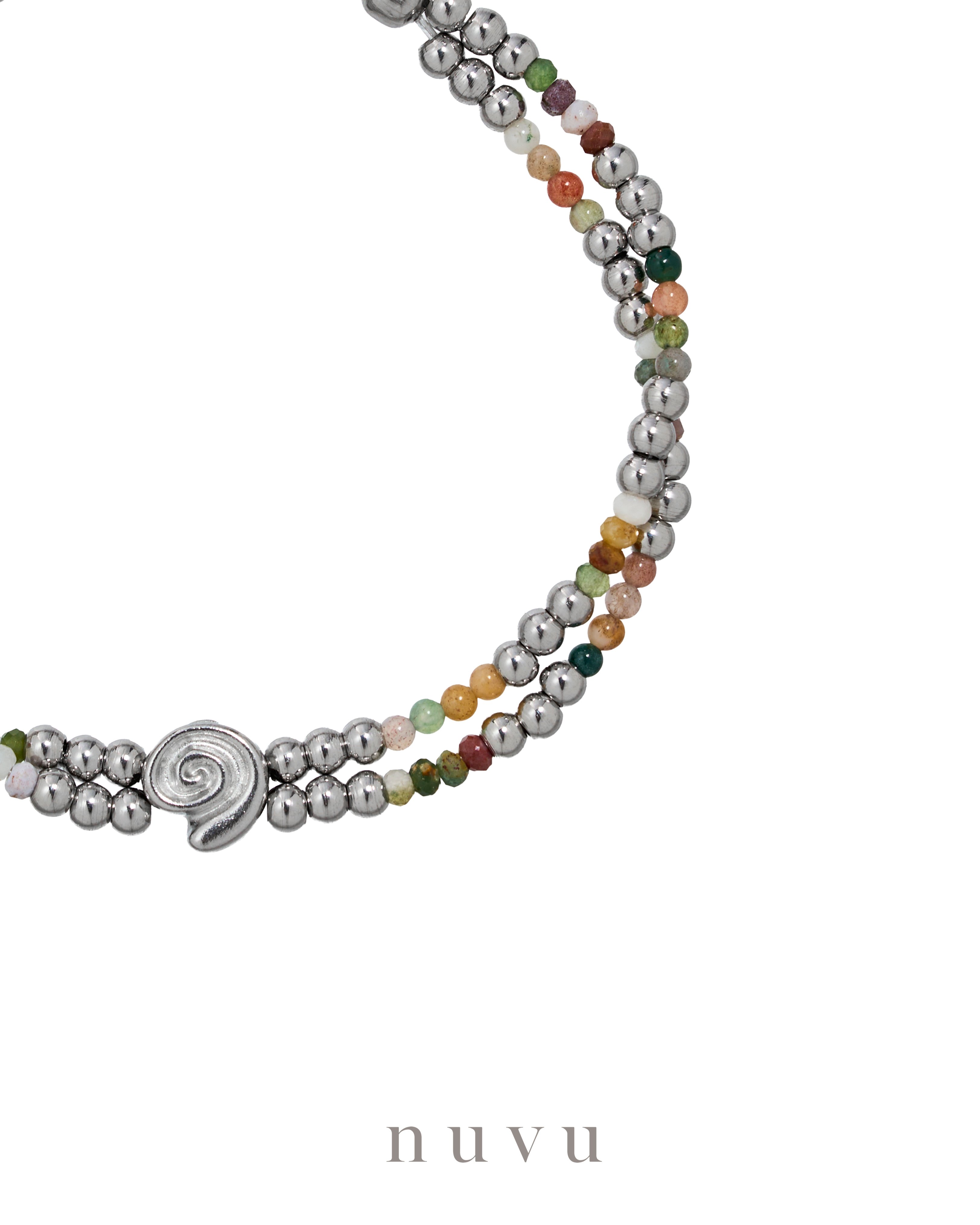 NUVU · Calm Wave Series Slowing down doesn’t mean stopping — it means realigning with your own rhythm. When you move in harmony with yourself, anxiety loosens its grip. Each breath becomes a new current of flow. Balance in life isn’t about perfection — it’s about finding your frequency. NUVU’s beloved Ocean Jasper collection returns in a new design — Calm Wave. Amid the noise and rush of modern life, this series is your quiet sanctuary, a gentle reminder to pause, breathe, and reconnect. Ocean Jasper’s natural patterns ripple like ocean waves, soft and vast like moss-covered forests after the rain. It embodies the energy of nature — calm, nurturing, and infinite. When life feels heavy or directionless, it becomes your guiding light, helping you release negativity and find inner peace again. It soothes anxiety, restores balance, and strengthens emotional stability and self-acceptance. When you’re ready to change and move forward at your own pace, it becomes your compass — steady, patient, and filled with quiet power. Calm Wave carries the energy of gentle resilience. It embraces your imperfections, your pauses, your evolution, offering support and strength through every challenge. Whether you are in a phase of confusion, growth, or transformation, it stands by you — soft as the tide, strong as the sea, a constant reminder that peace and courage can coexist. ✨ Calm Wave Series Silence is not weakness. Gentleness is power. Let your heart and your life return to their natural rhythm. Crystal : Ocean Jaspers Material : Stainless Steel Bead size : 2-3mm Bracelet : 16cm Delivery Time : All our designs are meticulously handcrafted, which requires time for production. Kindly allow 7-14 days for delivery to your doorstep. Any special enquiry please contact our customer service.