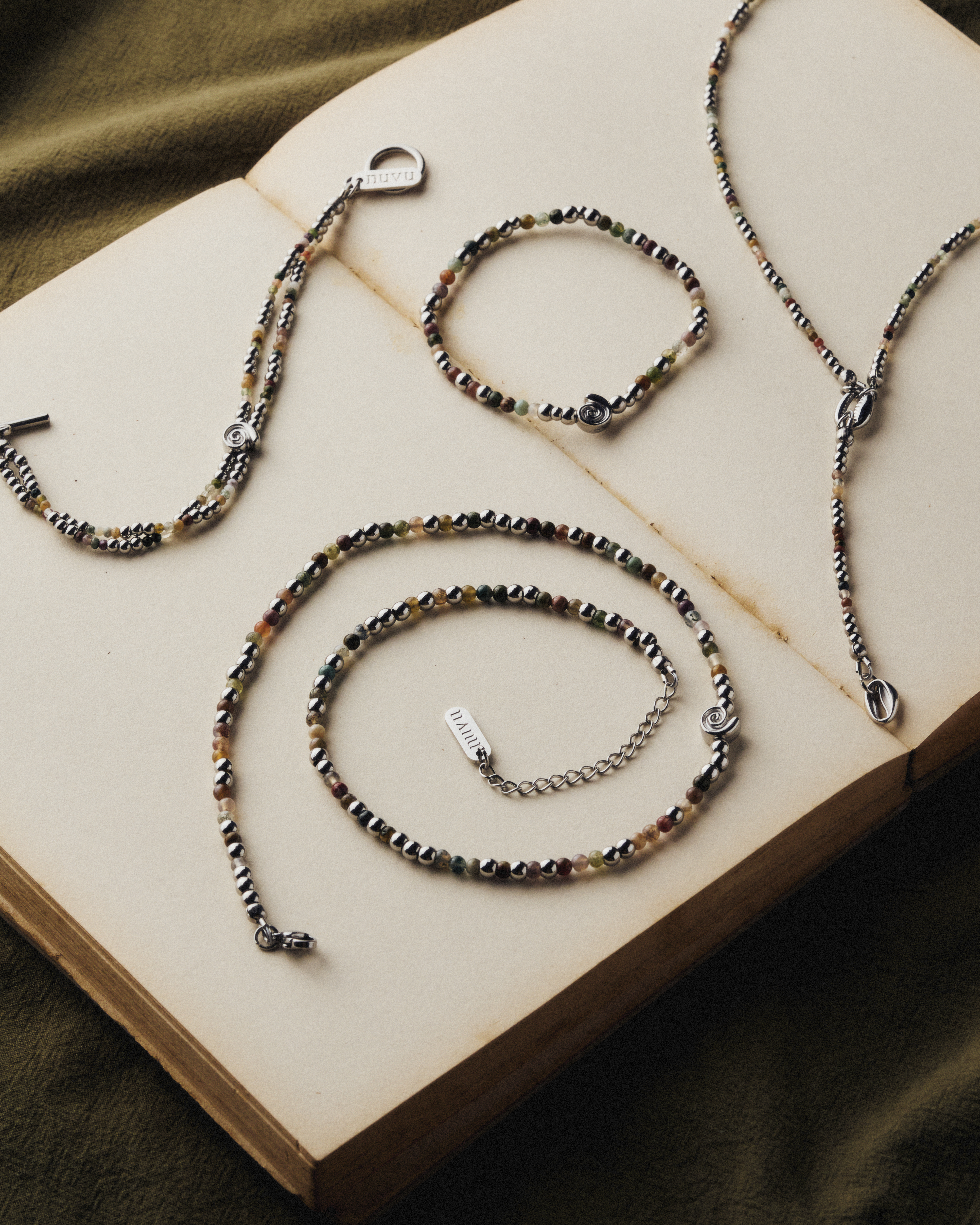 NUVU · Calm Wave Series Slowing down doesn’t mean stopping — it means realigning with your own rhythm. When you move in harmony with yourself, anxiety loosens its grip. Each breath becomes a new current of flow. Balance in life isn’t about perfection — it’s about finding your frequency. NUVU’s beloved Ocean Jasper collection returns in a new design — Calm Wave. Amid the noise and rush of modern life, this series is your quiet sanctuary, a gentle reminder to pause, breathe, and reconnect. Ocean Jasper’s natural patterns ripple like ocean waves, soft and vast like moss-covered forests after the rain. It embodies the energy of nature — calm, nurturing, and infinite. When life feels heavy or directionless, it becomes your guiding light, helping you release negativity and find inner peace again. It soothes anxiety, restores balance, and strengthens emotional stability and self-acceptance. When you’re ready to change and move forward at your own pace, it becomes your compass — steady, patient, and filled with quiet power. Calm Wave carries the energy of gentle resilience. It embraces your imperfections, your pauses, your evolution, offering support and strength through every challenge. Whether you are in a phase of confusion, growth, or transformation, it stands by you — soft as the tide, strong as the sea, a constant reminder that peace and courage can coexist. ✨ Calm Wave Series Silence is not weakness. Gentleness is power. Let your heart and your life return to their natural rhythm. Crystal : Ocean Jaspers Material : Stainless Steel Bead size : 2-3mm Necklace : 46cm+5cm Delivery Time : All our designs are meticulously handcrafted, which requires time for production. Kindly allow 7-14 days for delivery to your doorstep. Any special enquiry please contact our customer service.