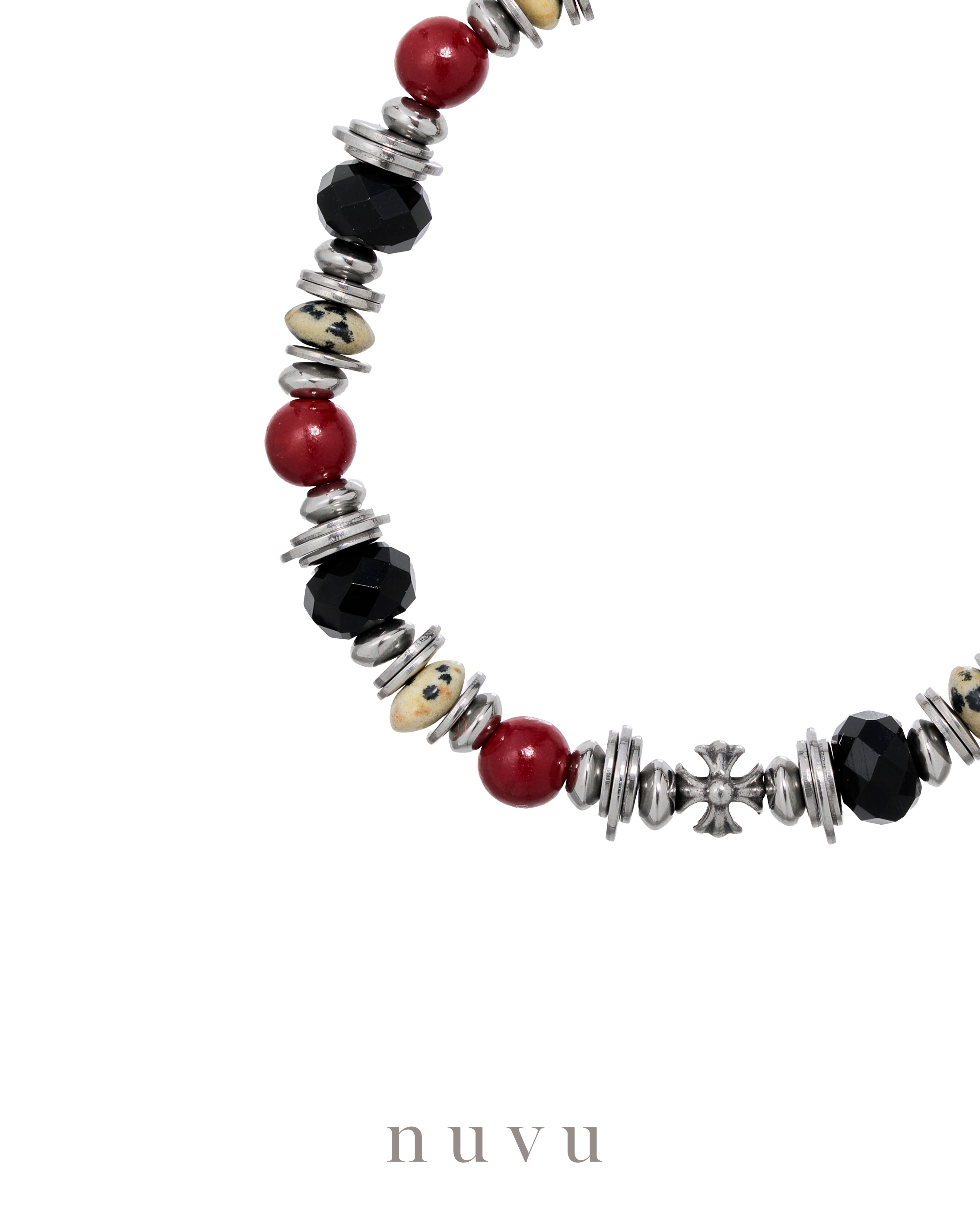 NUVU · Ignite Root Series Created for the 2026 Nine Purple Fire Cycle In a fast-moving world, what we truly need is not speed — but the ability to stay grounded while moving forward. Introducing NUVU’s Ignite Root Series, designed to awaken momentum while anchoring your inner foundation. This is not chaotic fire, but a focused, rooted flame with direction and endurance. ⸻ 🔴 Cinnabar | The Spark of Fire Energy Cinnabar has long been regarded as a powerful protective stone. It helps block negative interference, stabilize your aura, and activate prosperity and positive flow. It strengthens confidence and initiative, allowing you to step forward boldly when opportunities arise. ⚫ Black Agate | Grounding & Stability Black Agate forms the essential “root” of Ignite Root. It stabilizes energy, enhances focus and self-trust, and helps you maintain clear boundaries in relationships and social settings, so your energy is not easily drained by external influences. 🟡 Dalmatian Jasper | Willpower & Action Dalmatian Jasper supports consistent action and resilience. It helps lift low moods, overcome fatigue and procrastination, and encourages calm reflection paired with decisive movement. A stone that helps you stop circling emotions and start moving forward. ⸻ The meaning of Ignite Root is simple: Fire gives you momentum. Roots help you last. NUVU · Ignite Root Ignite your drive. Stay grounded within. And move through the Nine Purple Fire cycle with strength, clarity, and endurance. Crystal : Cinnabar, Damatian Jaspers, Black Agate Material : Stainless Steel Bead size : 4-8mm Bracelet : 16cm Delivery Time : All our designs are meticulously handcrafted, which requires time for production. Kindly allow 7-14 days for delivery to your doorstep. Any special enquiry please contact our customer service.