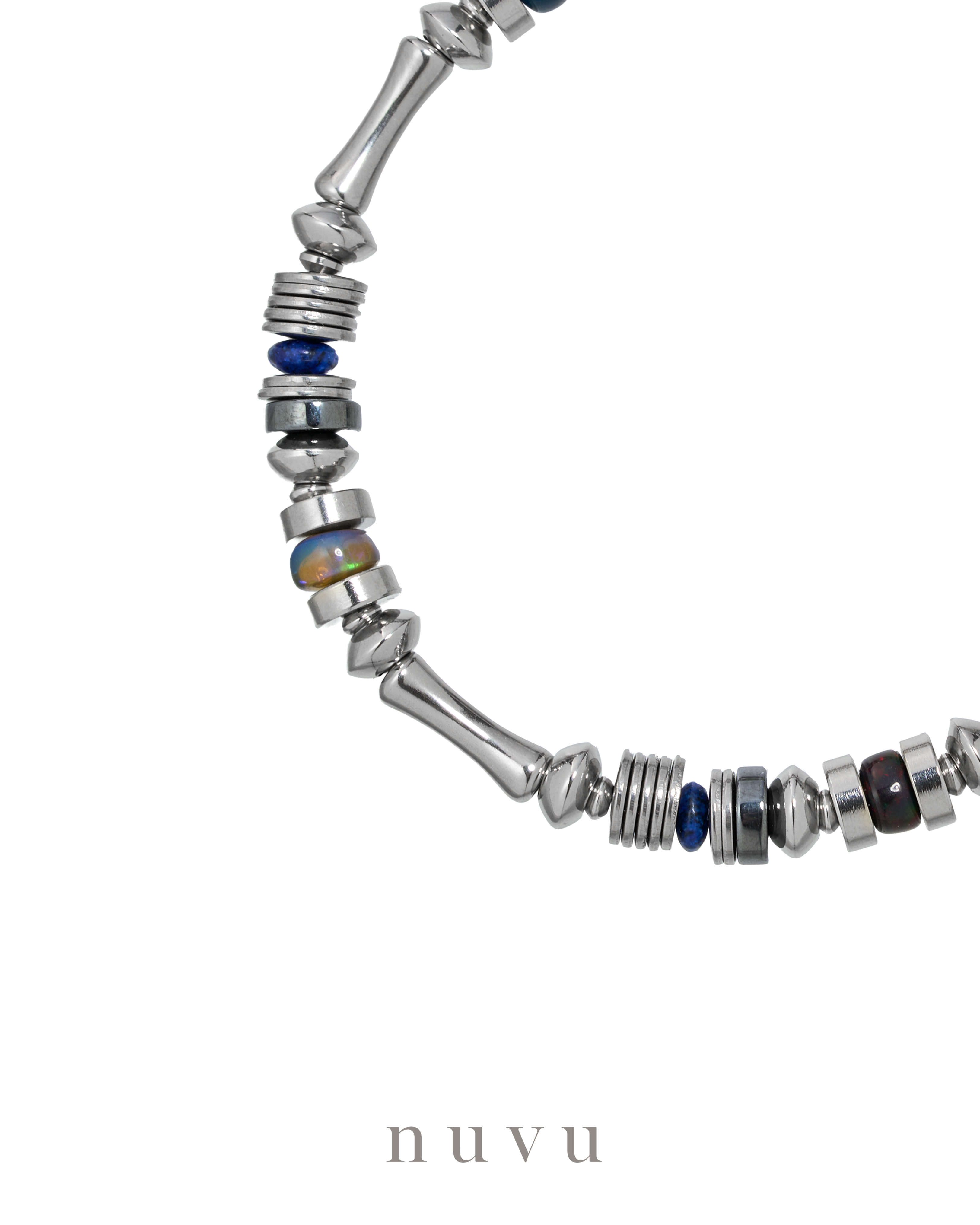 NUVU · Loop 2.0 Series Stay Magnetic. The long-awaited Black Opal Series returns — an elevated evolution of NUVU’s most beloved Loop Collection. Among all opals, black opal remains the rarest and most mysterious, glowing with shifting hues that mirror your own inner strength. This time, Loop 2.0 pairs Black Opal with Lapis Lazuli, blending charm and wisdom into one powerful current of connection. Whether you seek stronger relationships, career breakthroughs, or renewed confidence, Loop 2.0 helps you realign your energy — inside and out. 💎 Black Opal More than its vivid play of light, Black Opal radiates calm confidence and magnetic presence. It activates all seven chakras, balances emotions, and restores clarity. Under pressure, it grounds your energy and keeps you steady — your natural shield against anxiety and fatigue. 💙 Lapis Lazuli A stone of insight and communication, Lapis helps you stay clear and composed in every interaction. It sharpens intuition, enhances expression, and builds genuine connections rooted in trust and understanding. ✨ Loop 2.0 · Energy Reconnected More than a symbol of charm — it’s a loop of energy that flows endlessly between you and the world. Every encounter becomes a spark of luck, confidence, and growth. NUVU · Loop 2.0 Series — your timeless connection between energy, charm, and prosperity. Crystal : Black Opal Material : Stainless Steel Bead size : 6mm Bracelet : 16cm Delivery Time : All our designs are meticulously handcrafted, which requires time for production. Kindly allow 7-14 days for delivery to your doorstep. Any special enquiry please contact our customer service.