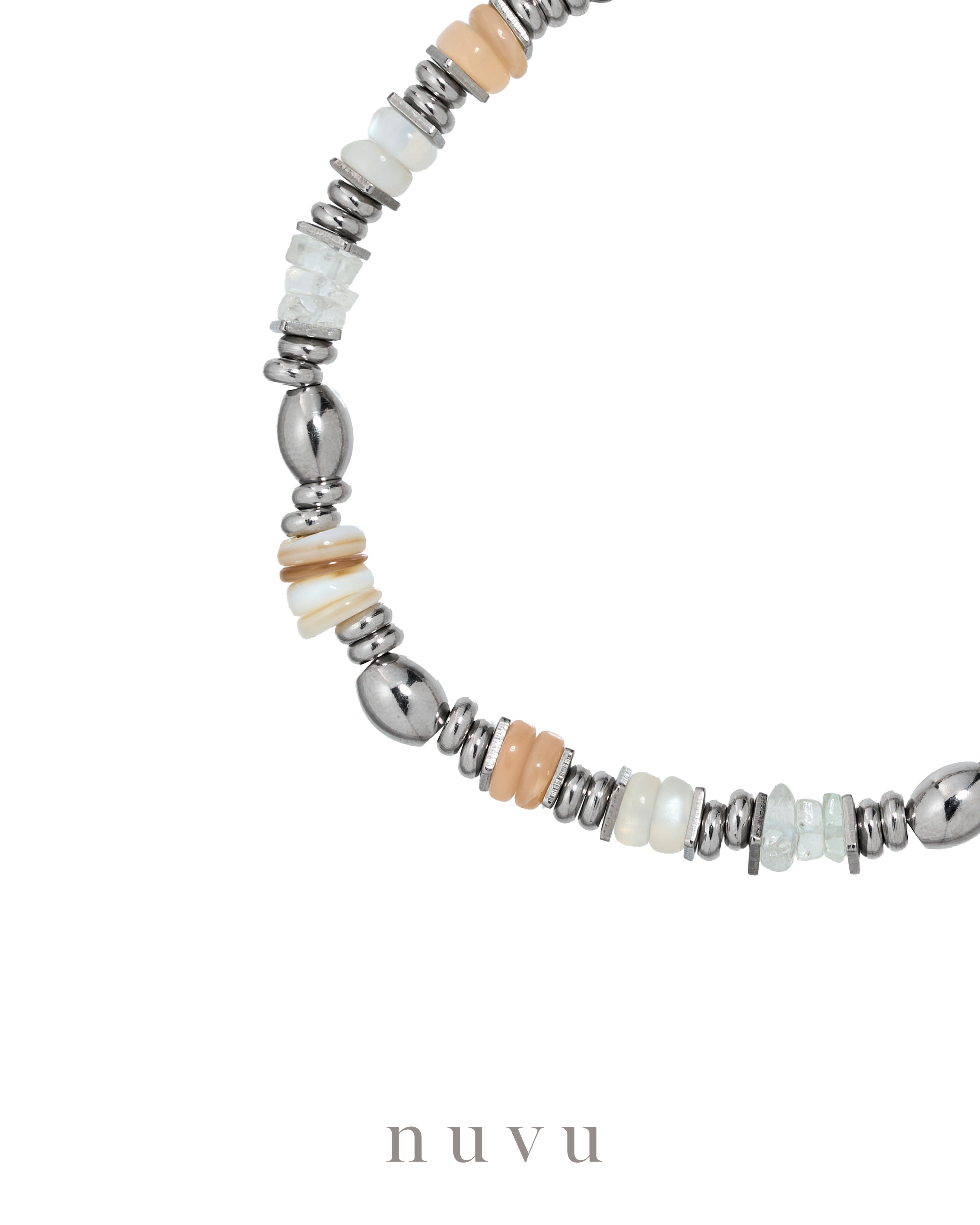 NUVU · Morning Dew Series Let everything begin from the calm of morning. That gentle hint of green, soft and luminous like dew at dawn, symbolizes renewal, hope, and the quiet power of growth. Like sunlight touching the heart, it awakens love, softness, and balance from within. The Morning Dew Series by NUVU combines clear Green Quartz with the soothing energy of White Moonstone and Orange Moonstone — a palette of serenity and lightness that feels as refreshing as morning air. Seemingly simple, yet filled with depth, meaning, and quiet strength. This series calms anxiety and tension, releases emotional heaviness, and helps you reconnect with empathy, trust, and gentle acceptance. It brings a steady, nurturing peace — the kind that lets you breathe again and move forward with clarity. In energy studies, green represents the magnetism of growth and abundance. Morning Dew doesn’t chase wealth — it invites it naturally. It’s a reminder that true prosperity flows from inner balance and quiet confidence. The subtle wood element within the stones infuses your thoughts with vitality and inspiration, empowering creators, thinkers, and dreamers to transform their ideas into reality. On a physical and emotional level, the series helps restore energy flow, ease fatigue, and promote restful sleep — like carrying a small forest with you, cleansing the mind, steadying emotions, and refreshing your focus. ✨ Morning Dew Series Gentle, yet powerful. Calm, yet full of life. May every morning bring you peace — and the soft, luminous strength to begin again. Crystal : Green Quartz, White Moonstone, Orange Moonstone, Shell Material : Stainless Steel Bead size : 5mm Bracelet : 16cm Delivery Time : All our designs are meticulously handcrafted, which requires time for production. Kindly allow 7-14 days for delivery to your doorstep. Any special enquiry please contact our customer service.