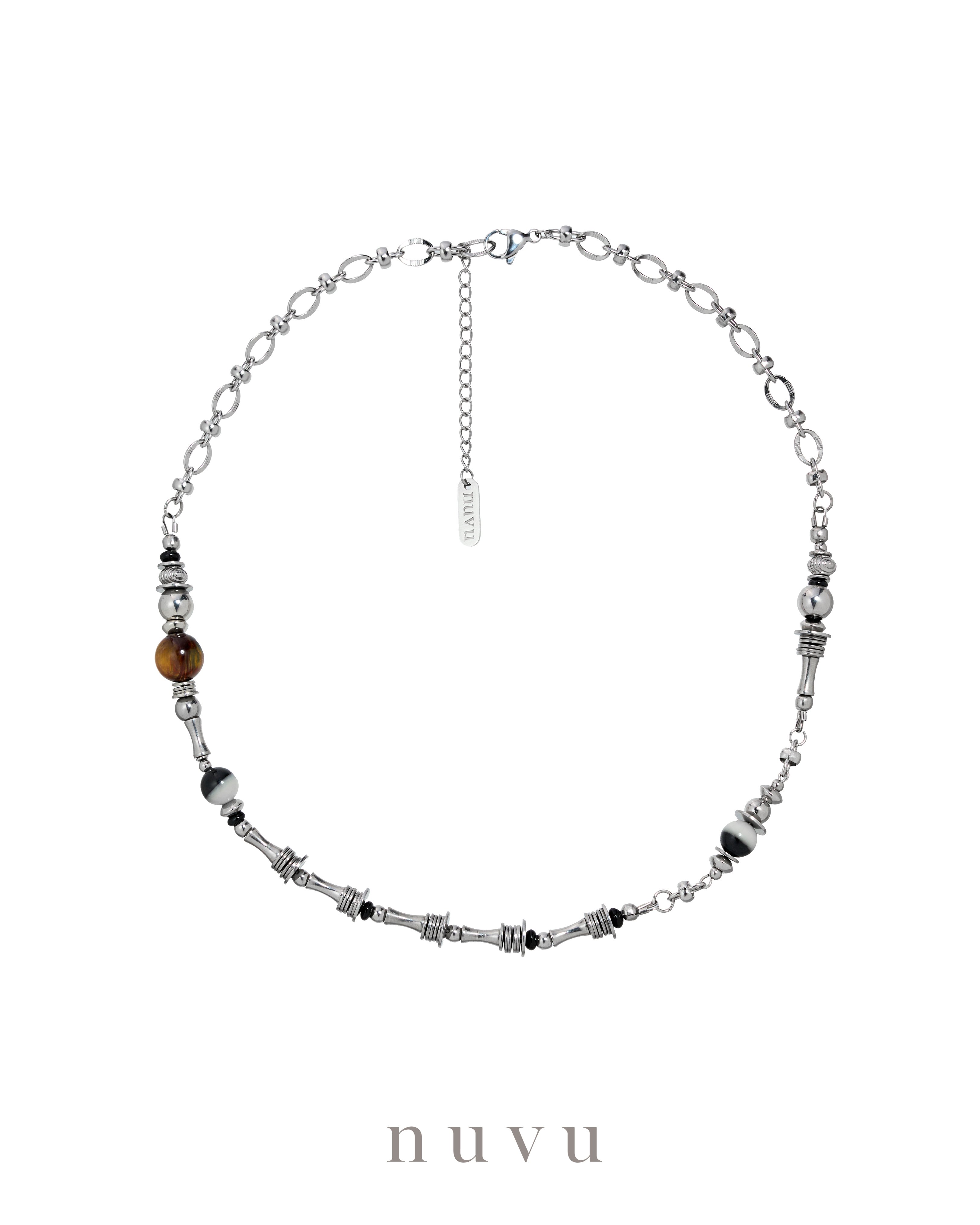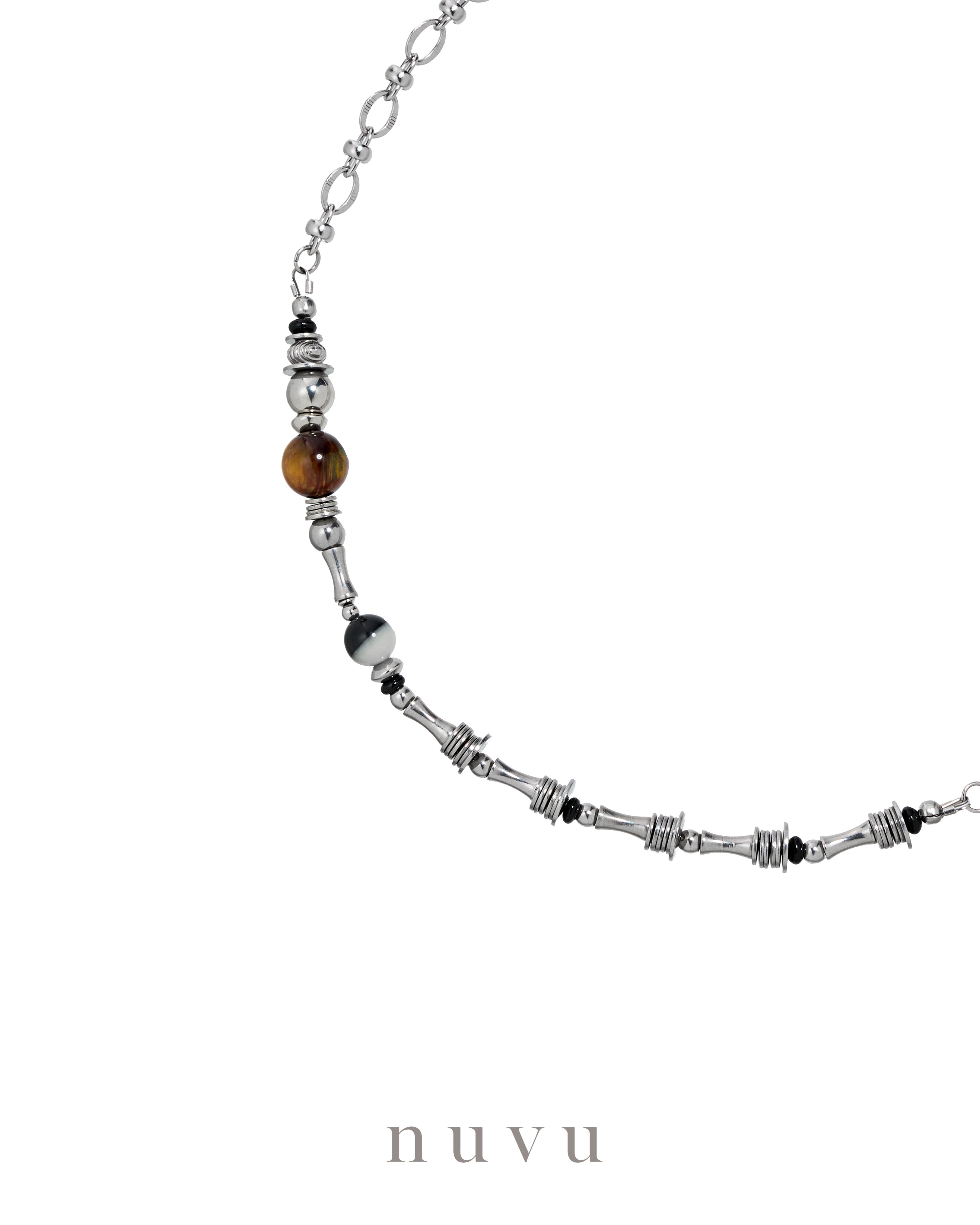 NUVU · Yin Balance Series Balance isn’t about choosing sides — it’s about letting opposing forces work together. Inspired by the philosophy of yin and yang, the Yin Balance Series centers on Tai Chi Stone, where black and white energies coexist in perfect harmony. Each stone represents the interaction and alignment of positive and negative magnetic forces — reminding us that true strength comes from balance, not extremes. Paired with South African Pietersite, known for its striking yellow and red storm-like patterns, this series amplifies breakthrough energy. The contrast of black and white, yellow and red, mirrors life itself — tension and release, stillness and action — transforming contrast into momentum, luck, and growth. The white side of Tai Chi Stone activates positive flow, supporting wealth attraction and turning stagnant situations around. The black side absorbs negativity and unwanted energy, helping clear fatigue, restore vitality, and strengthen overall resilience. To complete the balance, Black Agate is added as the grounding force — cutting through confusion, blocking negative influences, and protecting against bad luck and disruptive people. It keeps your direction clear when life feels overwhelming. At the heart of the series, Pietersite fuels courage and confidence. Often called the “Stone of Storms,” it pushes you to move forward even in uncertainty, helping you break inner limits, face challenges head-on, and unlock new opportunities aligned with growth and abundance. ✨ Yin Balance Series A reminder that when clarity meets courage, and protection meets momentum, you don’t just survive change — you move through it with power and purpose. Crystal : Petersite, Black Agate, Taichi stone Material : Stainless Steel Bead size : 8-10mm Necklace : 42+5cm Delivery Time : All our designs are meticulously handcrafted, which requires time for production. Kindly allow 7-14 days for delivery to your doorstep. Any special enquiry please contact our customer service.
